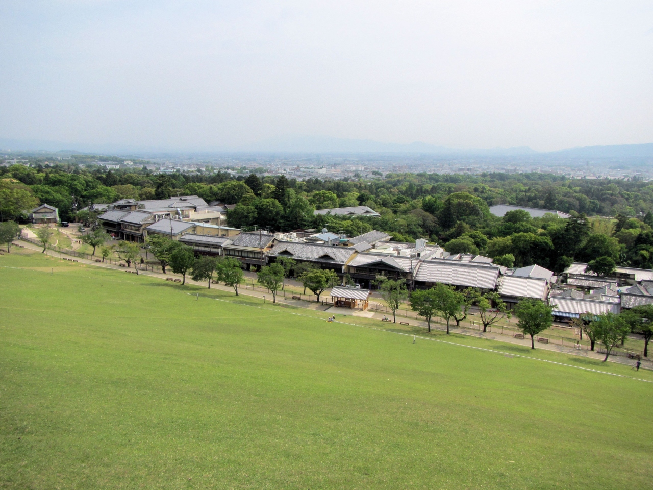 一面芝におおわれたなだらかな山で、丸い丘が3つ重なった形から三笠山とも呼ばれる。山頂からは大仏殿や五重塔、さらに奈良市街が一望でき、素晴らしい眺めが楽しめる。