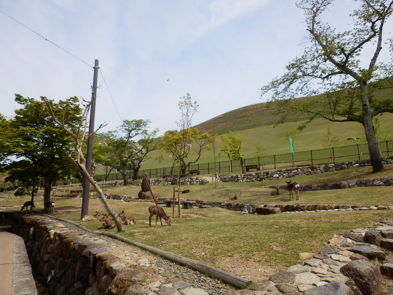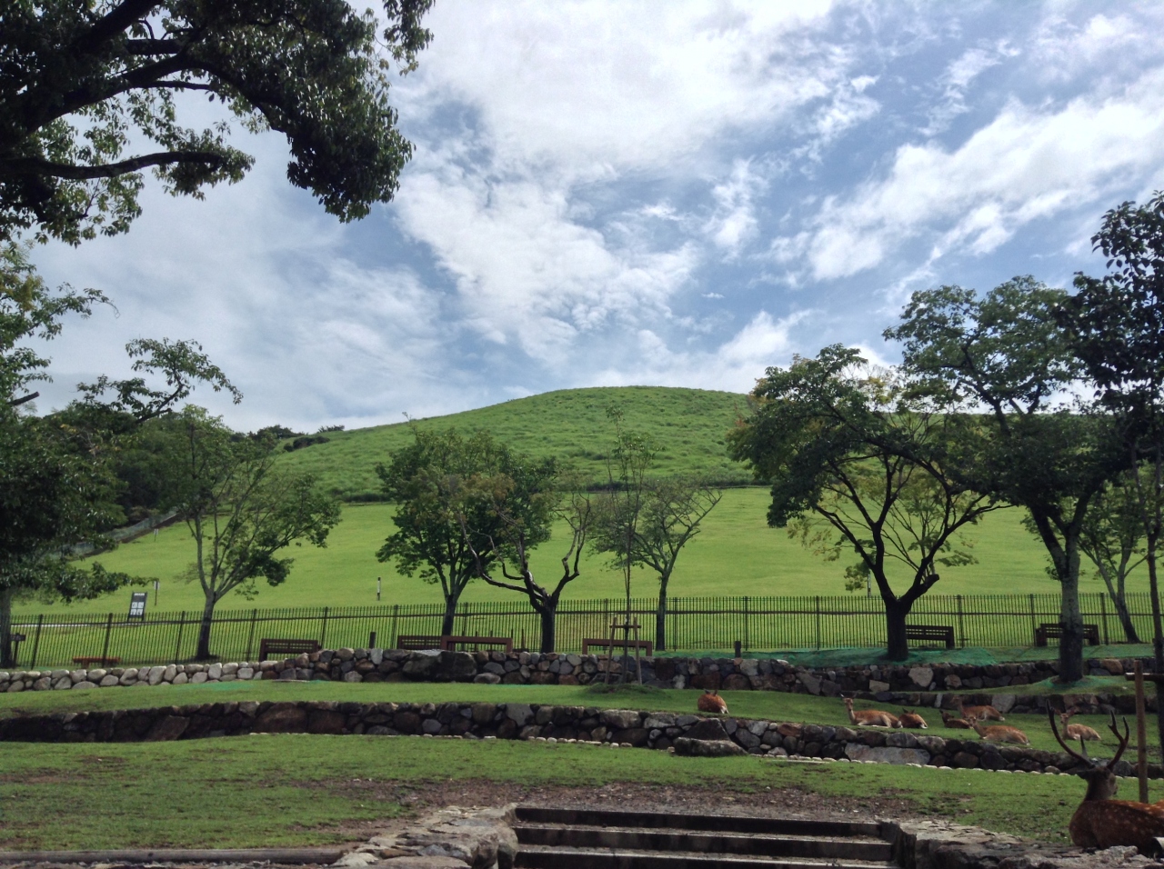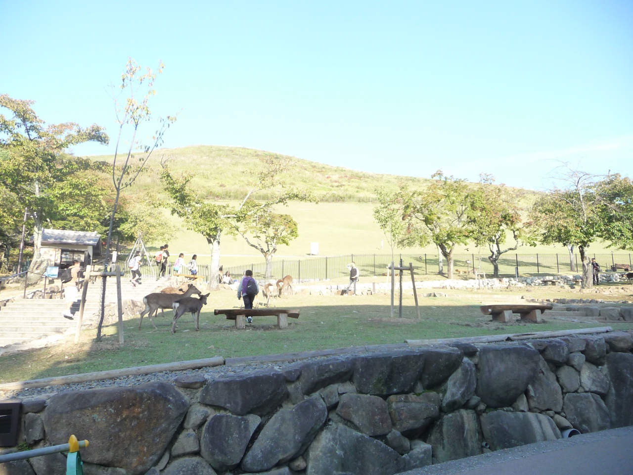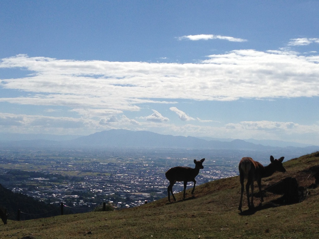 標高は342メートルですので、30分~40分、ゆっくり登ればそんなに大変ではありません。山頂からは天気が良ければ大和三山まで見ることができますよ。山頂にはたくさん鹿がいてゆったり草を食べています。鹿と奈良盆地、写真をとるのにはピッタリです。