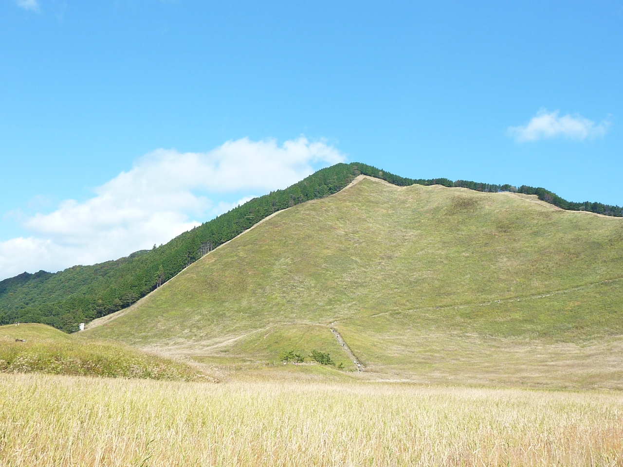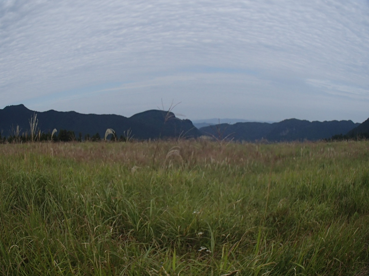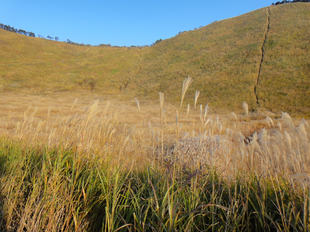 草原の開けた山の山麓にはすすきの野原が広がります。