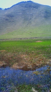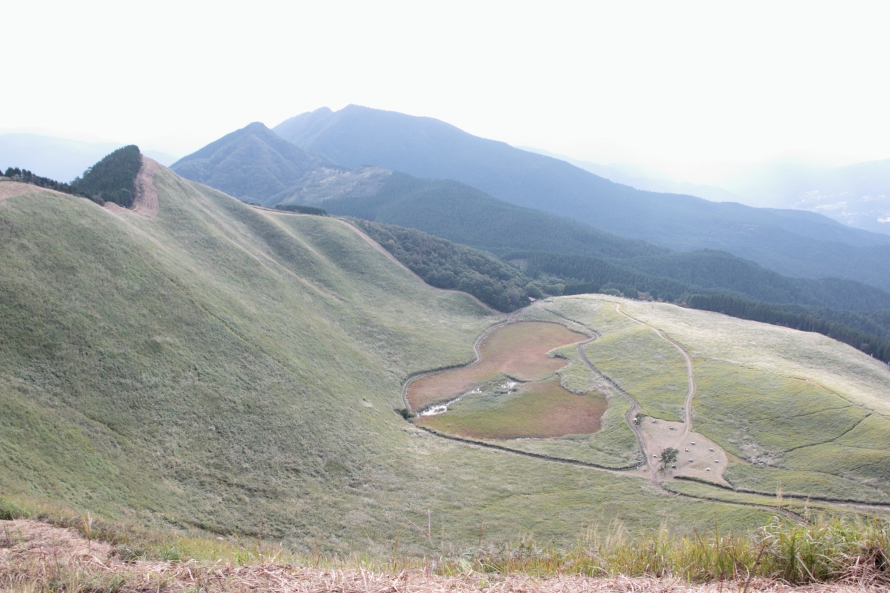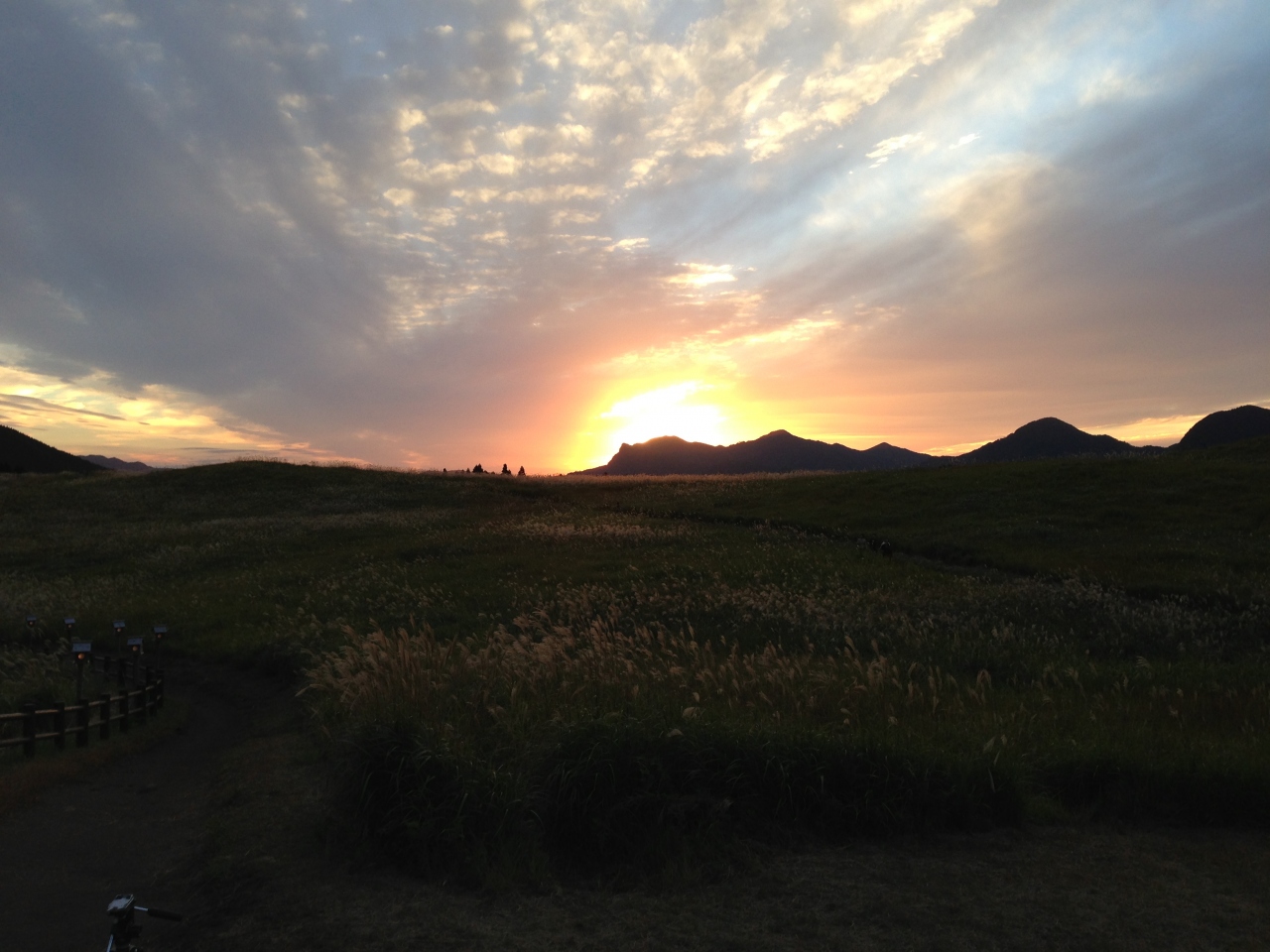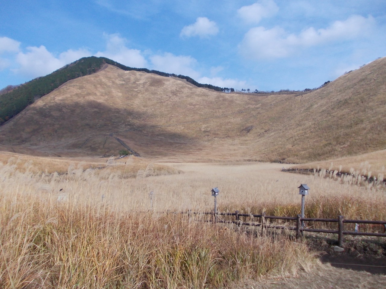 草原の開けた山の山麓にはすすきの野原が広がります。