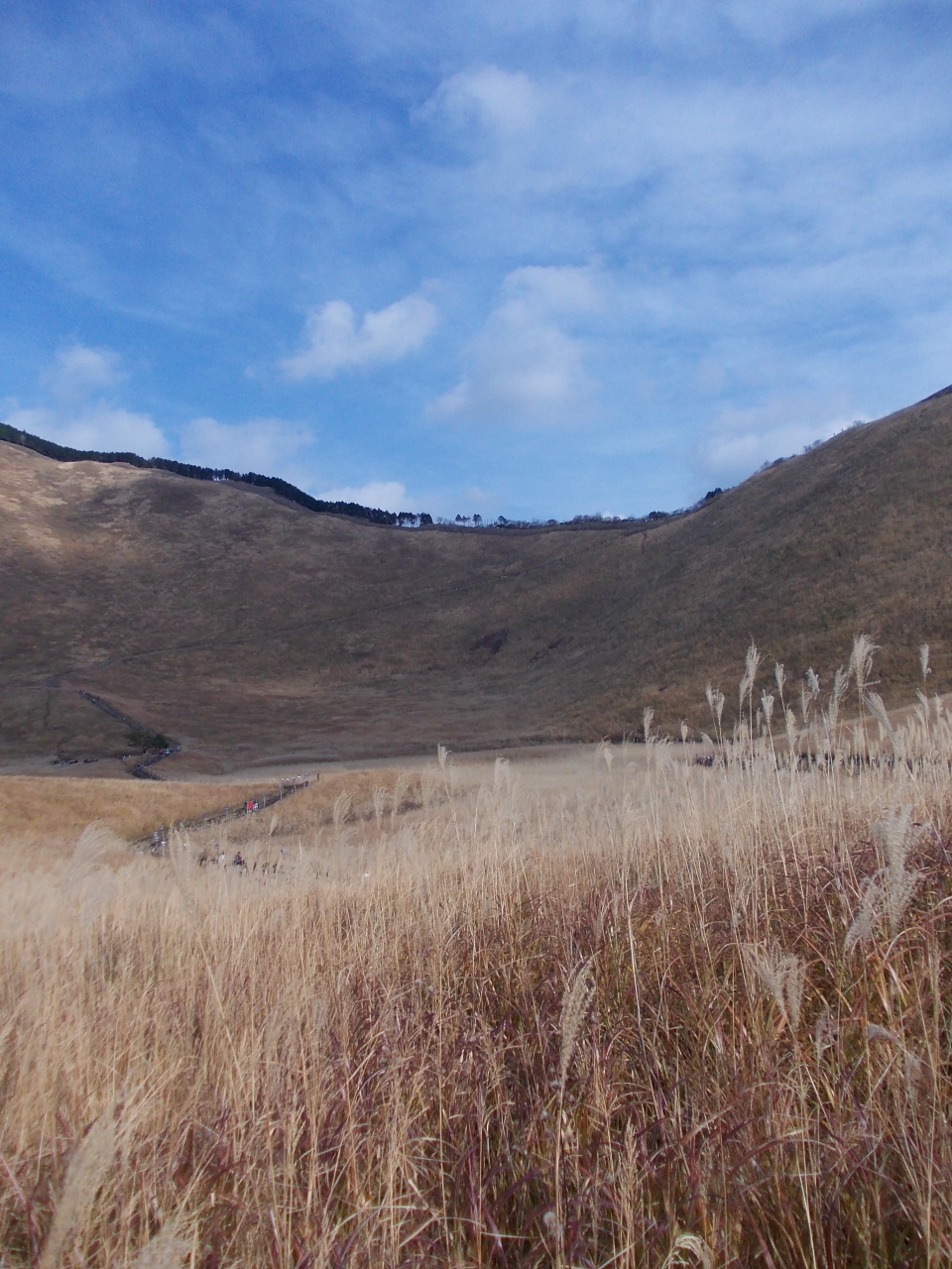 高原を散策していると、何人もの人が遊歩道を外れて