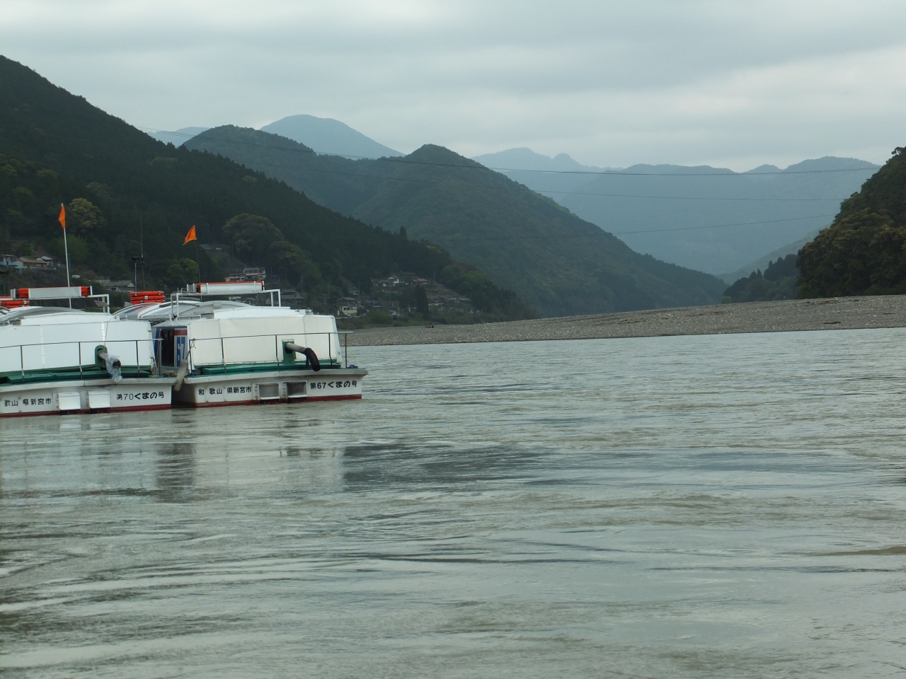 ジェット船で瀞峡観光しました。熊野本宮近くの志古乗船場から乗るのが一般的のようですが、往復2Hもかかるため、我々は途中の... 続きを読む小川口乗船場から乗りました。ここからは往復1Hですし、乗船して川昇りを楽しんでいるうちに瀞峡に入るので飽きません。(志古からのお客さんは小川口まで30分余分に乗船しているので、疲れた顔をされていました)