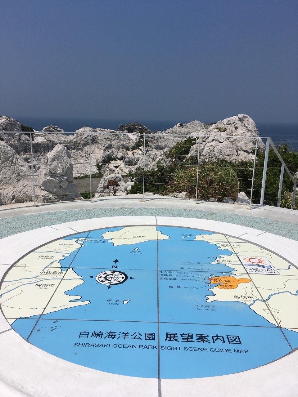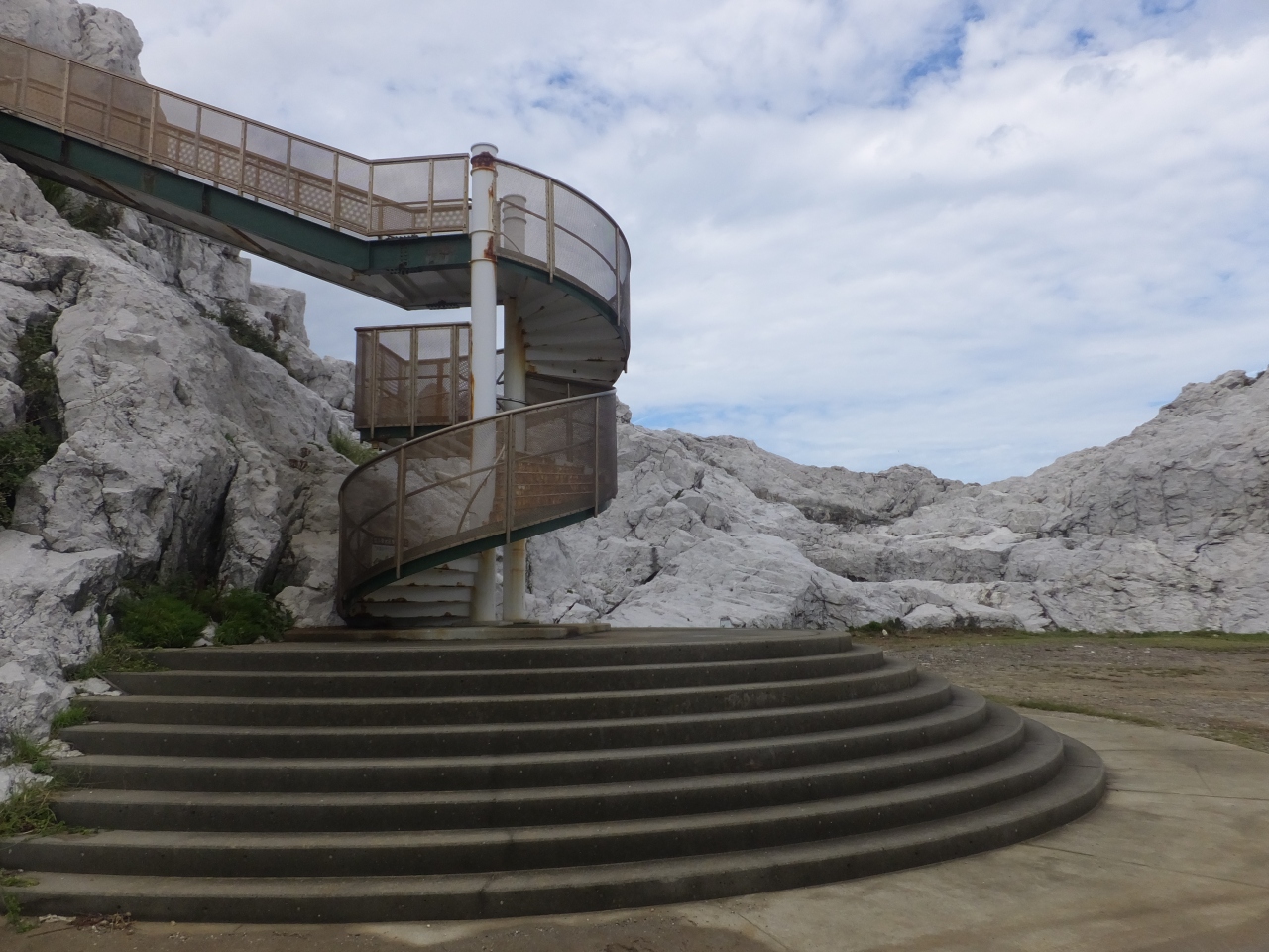 「日本の渚・百選」に選ばれた白崎海洋公園を訪問しました。園内には,道の駅やオートキャンプ場,ダイビングクラブハウス,カフ... 続きを読むェレストランがあり,2億5千万年以上前にできた石灰岩の岩壁が岬を囲むように広がっており,紺碧の海に突き出した白亜の岬という感じ。岩壁に登れる遊歩道があって,展望台からは,白い岩肌が青い海に映える「日本のエーゲ海」と称される景観が見渡せます(なお,2019年1月現在,同園は,台風21号の影響により,全面閉鎖とのこと https://www.shirasaki.or.jp/ )。