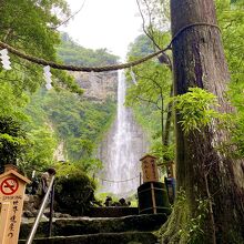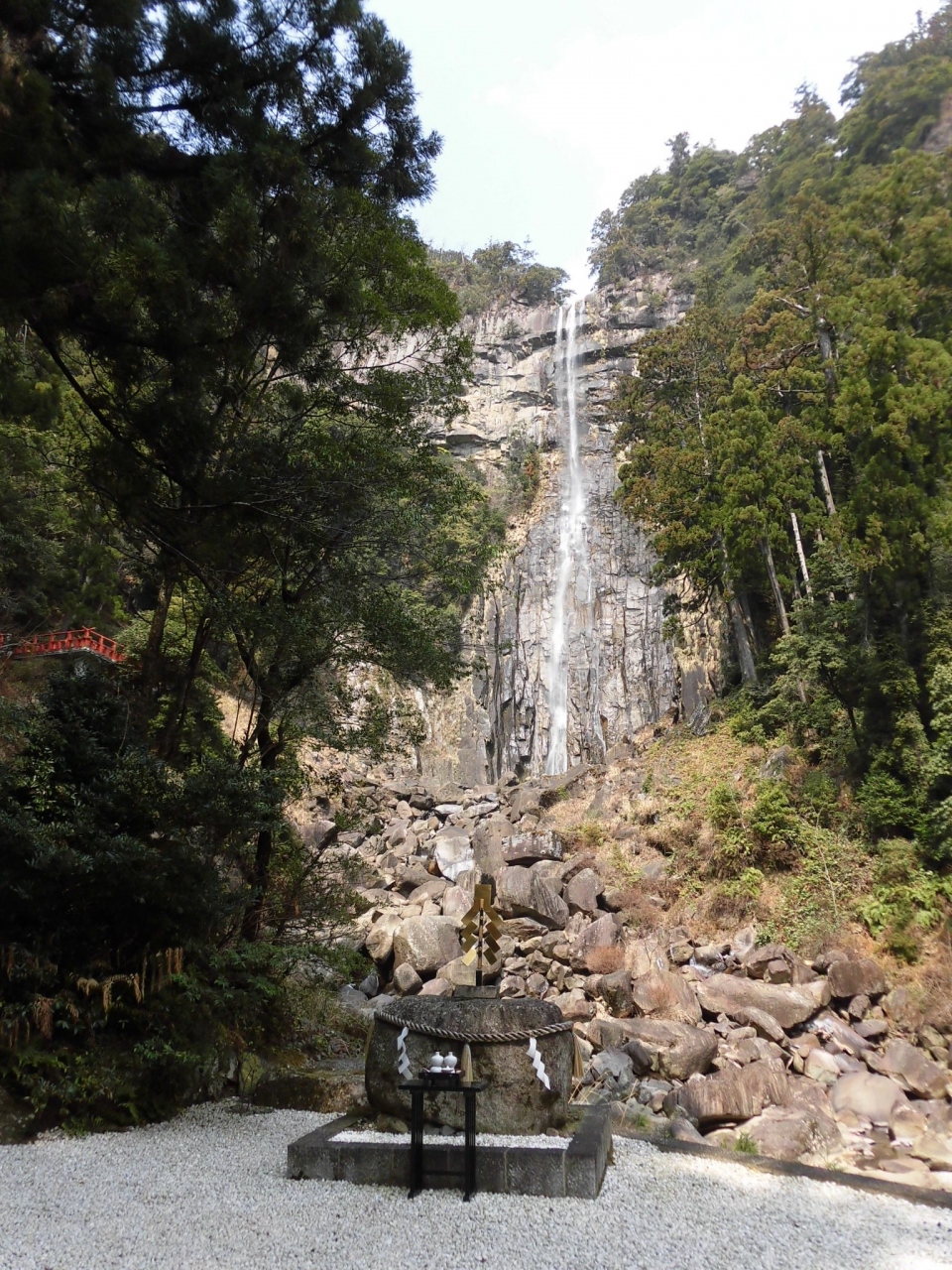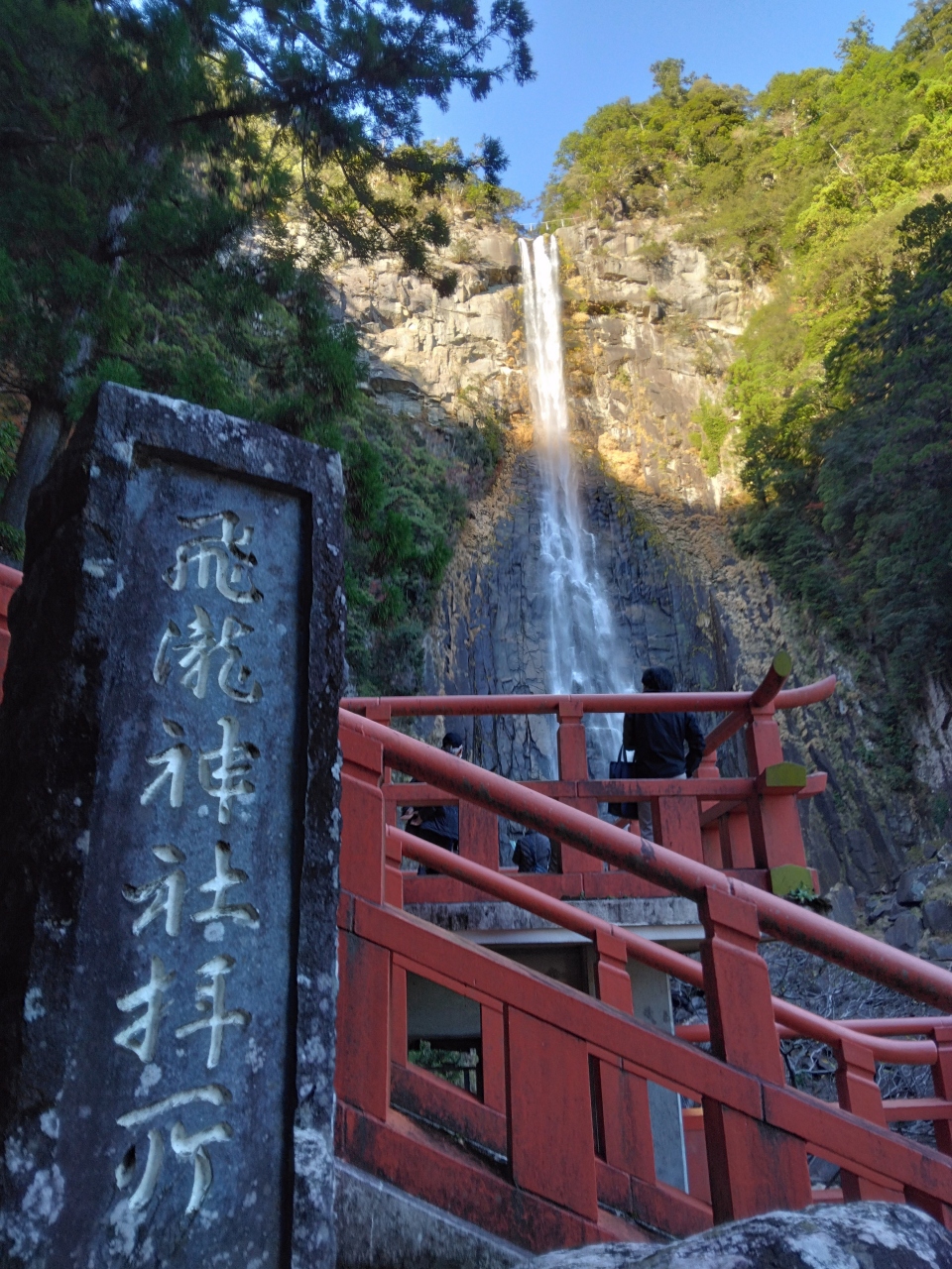 那智勝浦から山手の方へ上がっていきます。 那智の滝の近くには駐車場がありました。すぐ傍に鳥居があるところを見ると、神社の... 続きを読む御神体として祀られているようです。多少粗さの残る石段を下っていくと、滝の轟音が聞こえてきます。期待が高まる瞬間です! 石段を下りきると、正面に那智の滝が姿を現しました。滝つぼの近くまで登り、お参りすることもできました。 閉じる