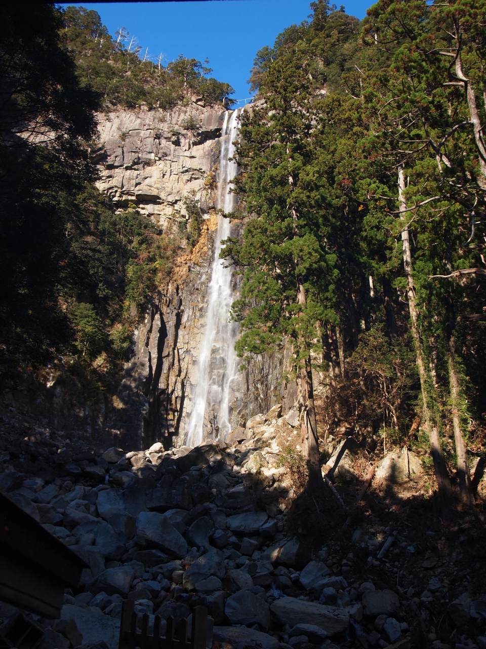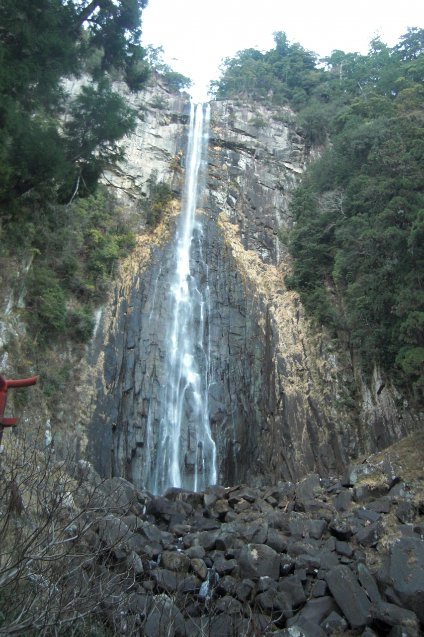 那智勝浦から山手の方へ上がっていきます。 那智の滝の近くには駐車場がありました。すぐ傍に鳥居があるところを見ると、神社の... 続きを読む御神体として祀られているようです。多少粗さの残る石段を下っていくと、滝の轟音が聞こえてきます。期待が高まる瞬間です! 石段を下りきると、正面に那智の滝が姿を現しました。滝つぼの近くまで登り、お参りすることもできました。 閉じる