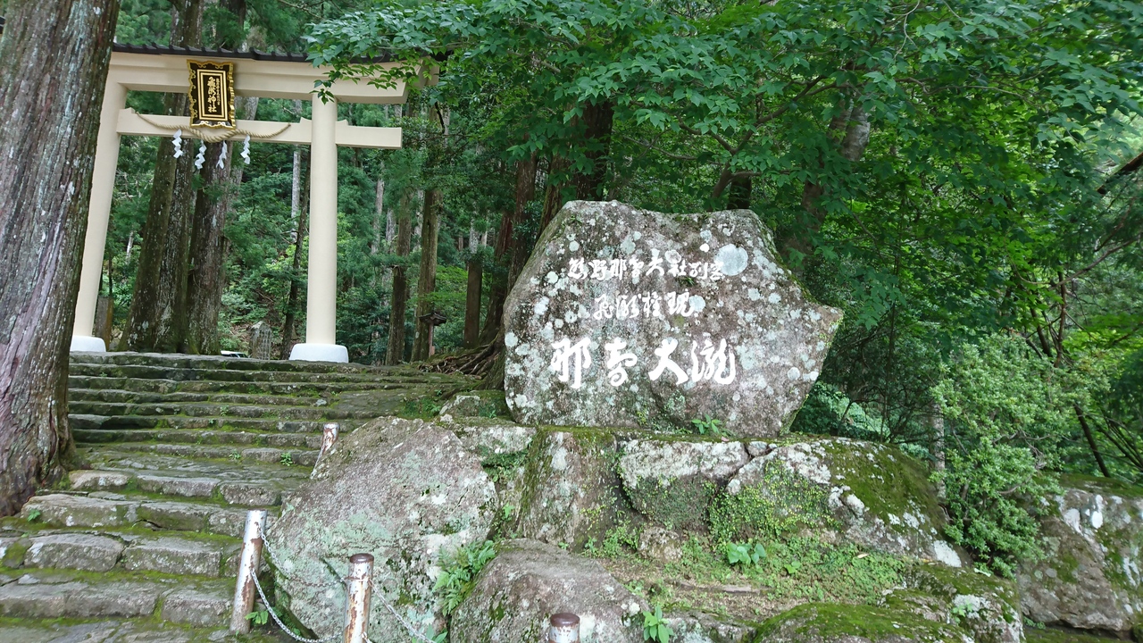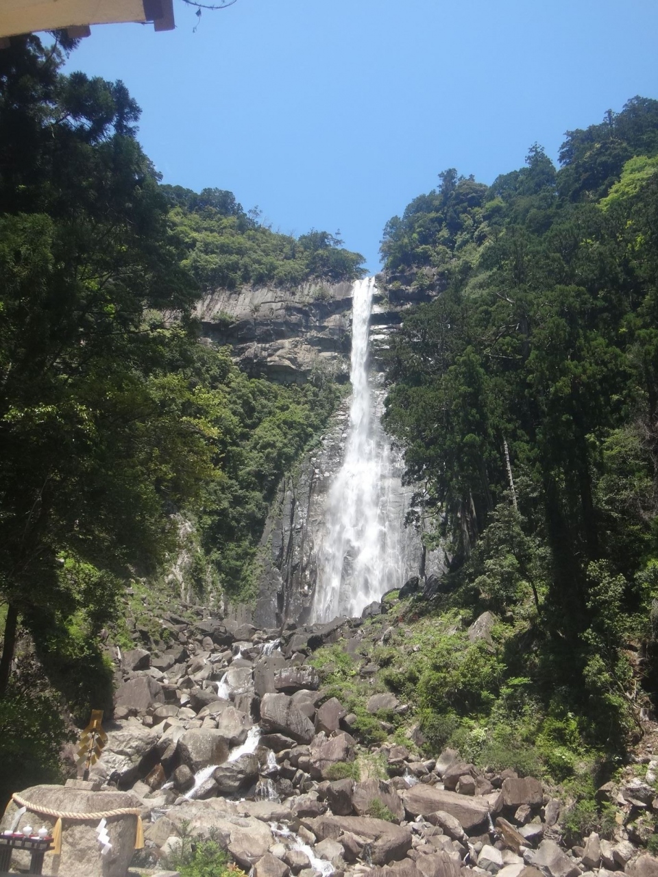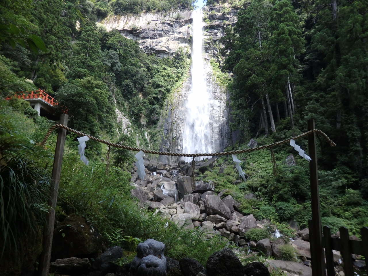 那智勝浦から山手の方へ上がっていきます。 那智の滝の近くには駐車場がありました。すぐ傍に鳥居があるところを見ると、神社の... 続きを読む御神体として祀られているようです。多少粗さの残る石段を下っていくと、滝の轟音が聞こえてきます。期待が高まる瞬間です! 石段を下りきると、正面に那智の滝が姿を現しました。滝つぼの近くまで登り、お参りすることもできました。 閉じる