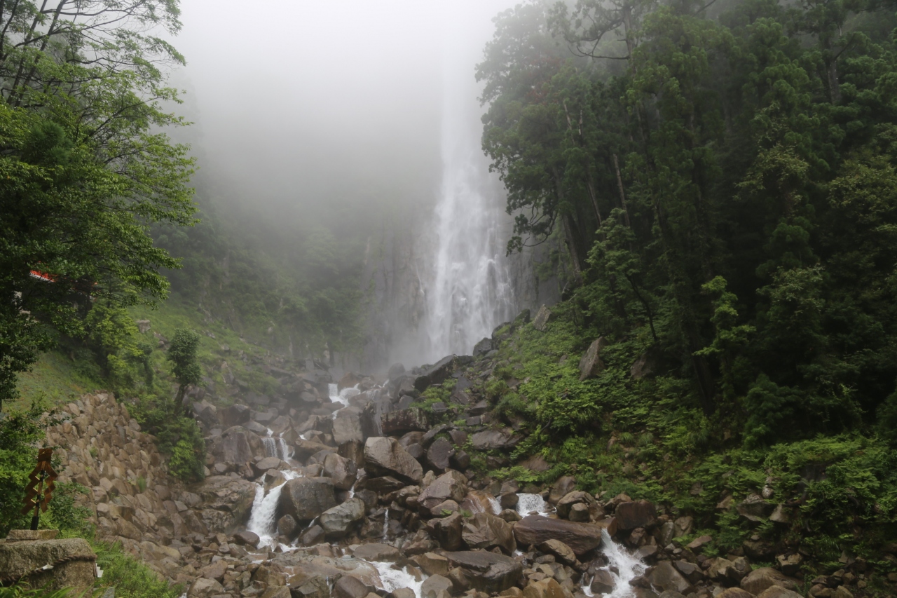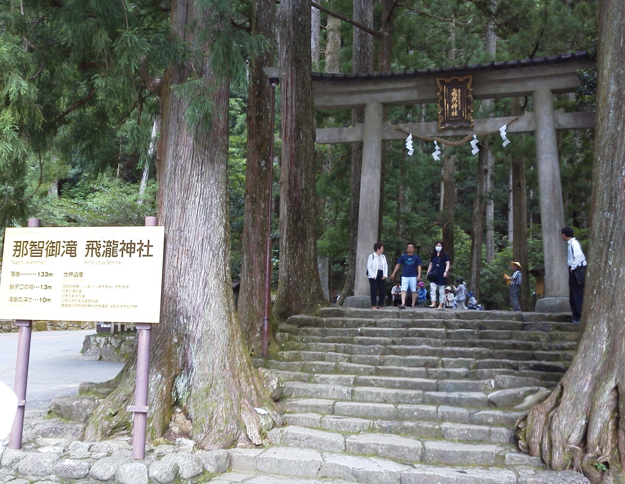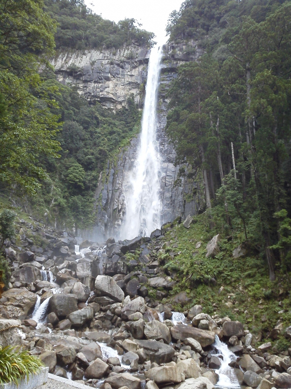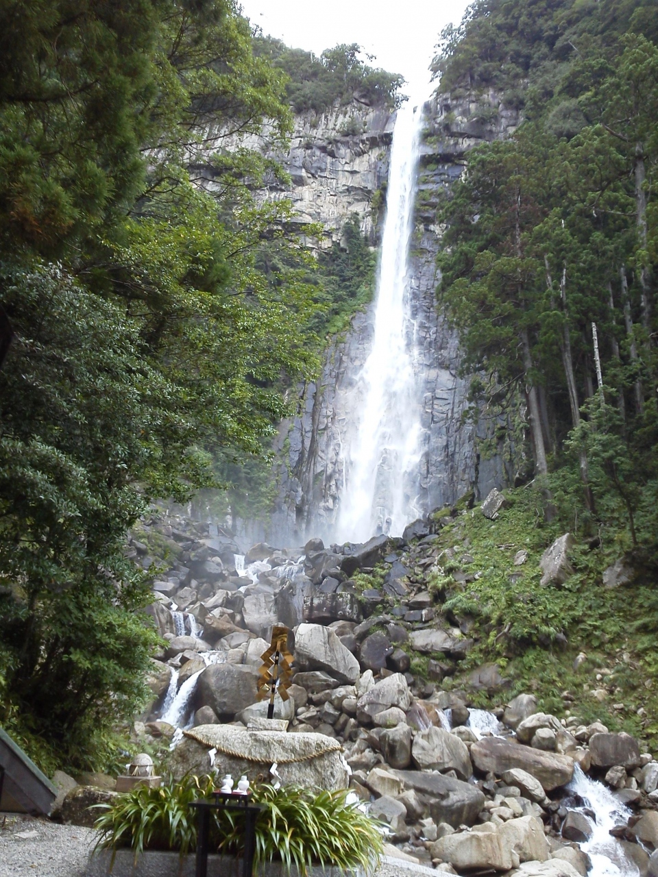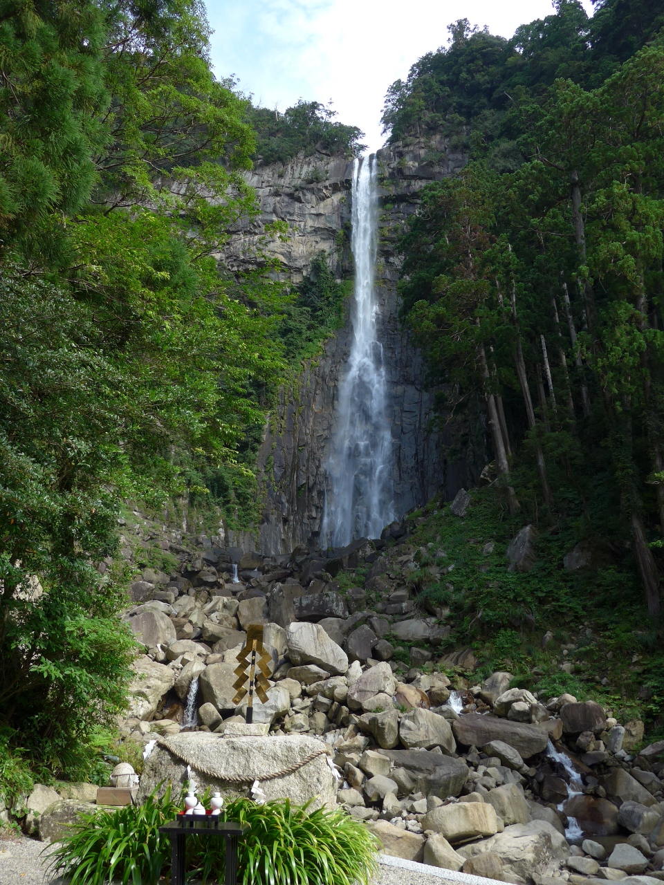 那智勝浦から山手の方へ上がっていきます。 那智の滝の近くには駐車場がありました。すぐ傍に鳥居があるところを見ると、神社の... 続きを読む御神体として祀られているようです。多少粗さの残る石段を下っていくと、滝の轟音が聞こえてきます。期待が高まる瞬間です! 石段を下りきると、正面に那智の滝が姿を現しました。滝つぼの近くまで登り、お参りすることもできました。 閉じる