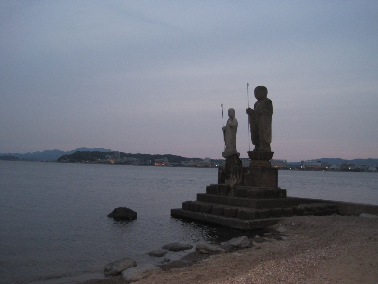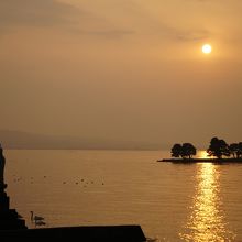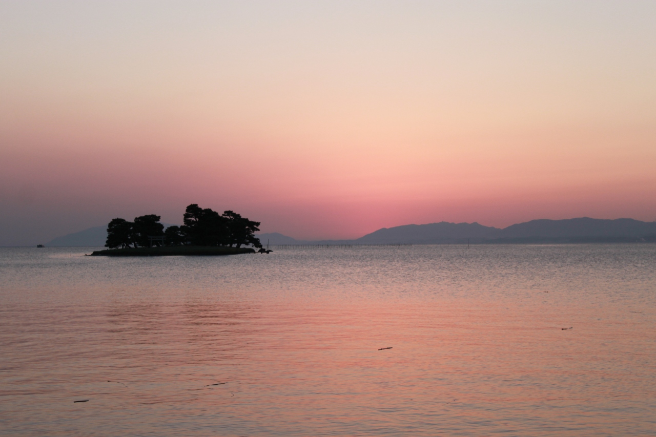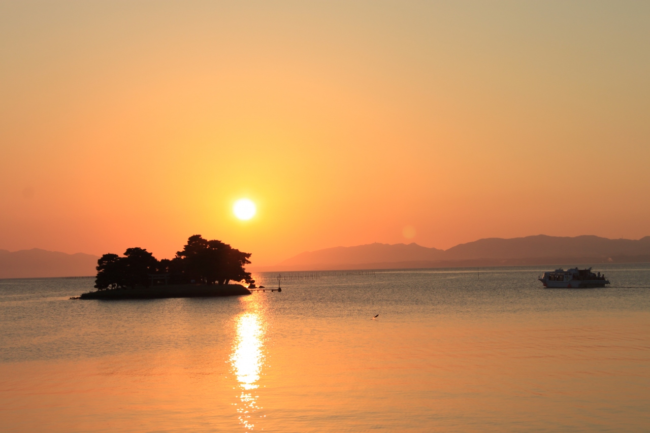 松江駅から宍道湖方面にまっすぐ進むと、宍道湖の東端にたどり着くので、どこも夕焼けスポッ... 続きを読むトだと思います。わたしが見た場所は、岸公園や夕日テラス方面から嫁ヶ島と一緒に夕日を見ました。日曜だったせいか、意外にも?かなり人がいて、脚立を立てたカメラマンなど早めに場所とりされていました。