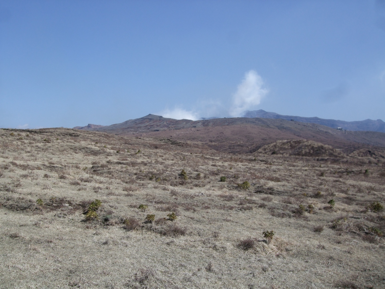 (現噴火口のある山は「阿蘇中岳」白い煙を吐いて今なお噴火活動をしている