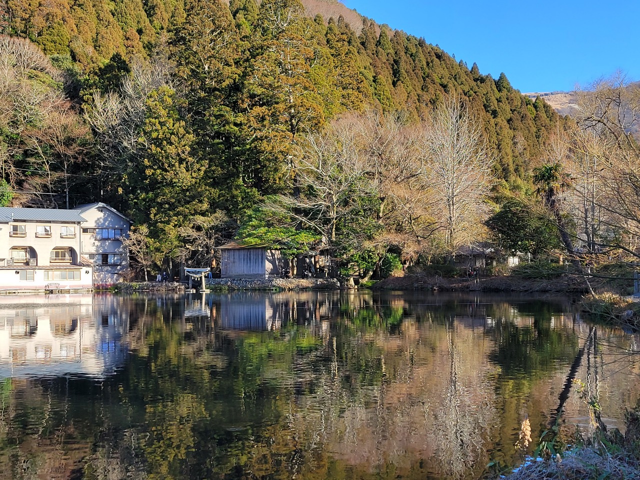 湯布院を代表する観光スポットで、観光客も多かったです。駐車場側に比べて、天祖神社の方は観光客が少ないので、ゆっくりと観光で...  続きを読むきます。近くのホテルに宿泊したので、早朝にも散歩に行きましたが、早朝は湖面が霧で覆われて、幻想的な雰囲気で綺麗でした。  閉じる