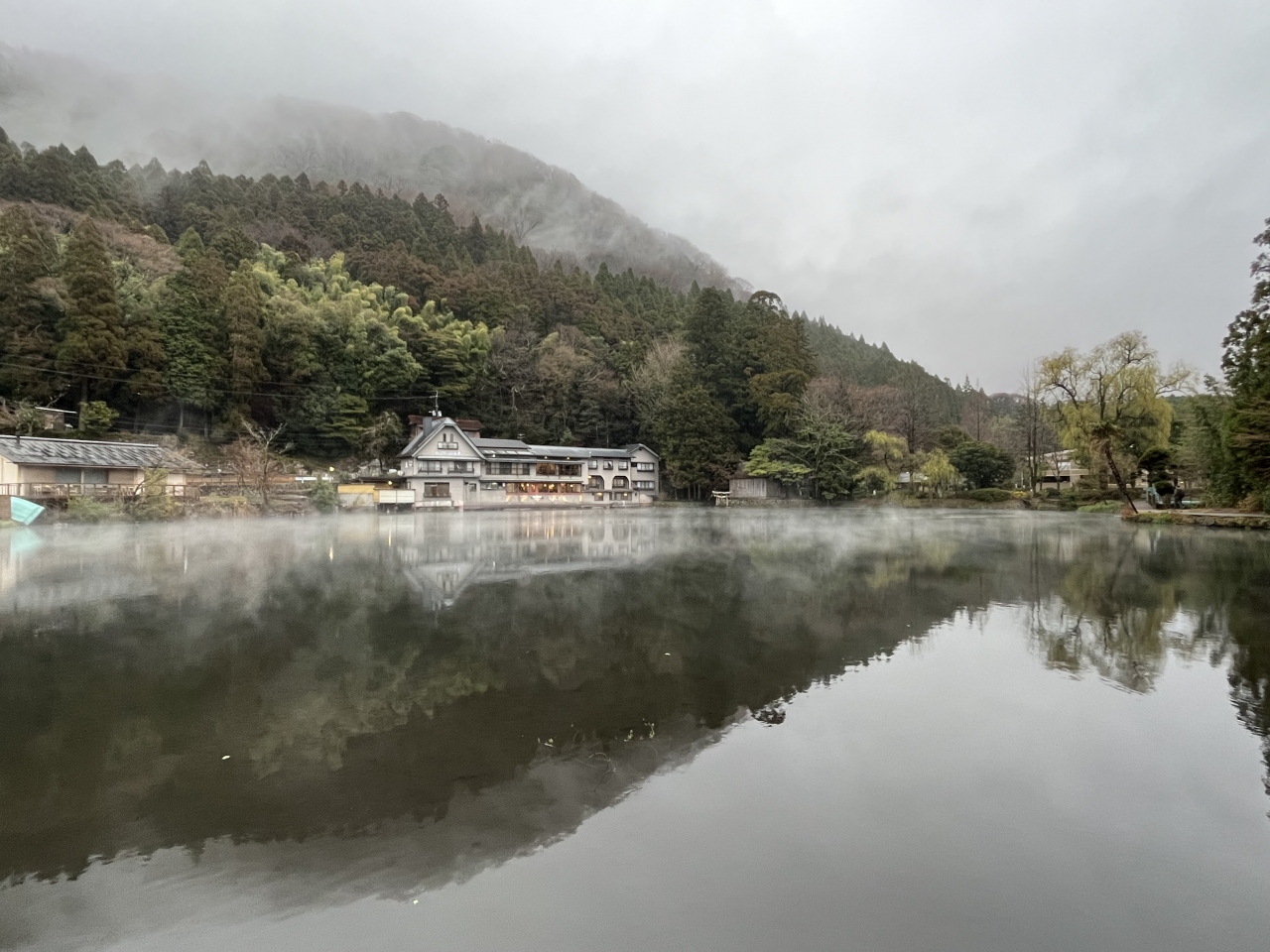 朝の金鱗湖はキレイなようです。