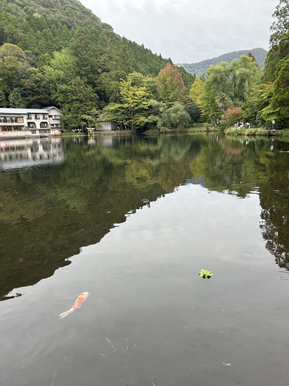 川沿いを歩き、金鱗湖に着いた時はほっとしまし...  続きを読むた。水面は穏やかで水草の合間を錦鯉が泳いでいました。