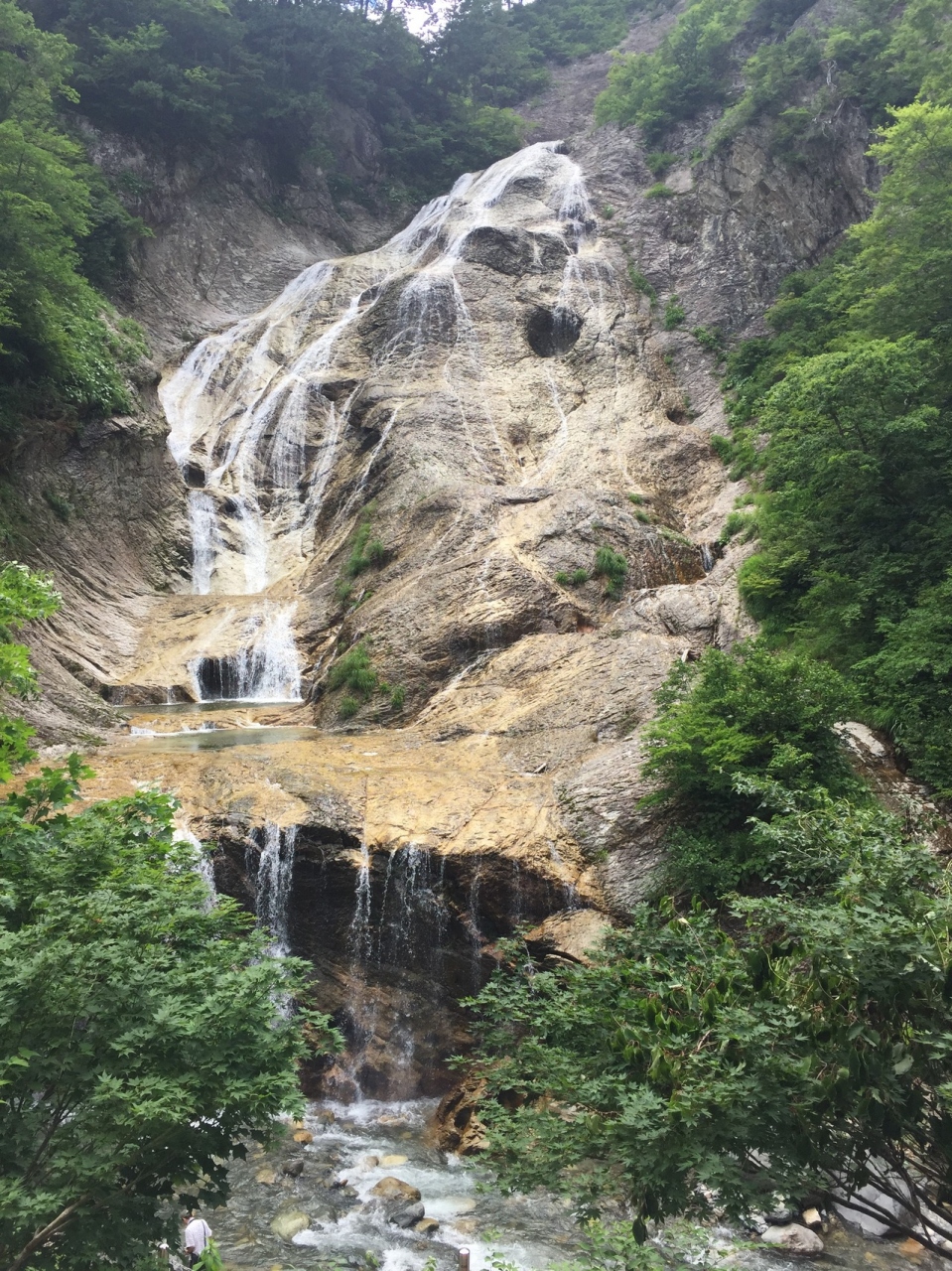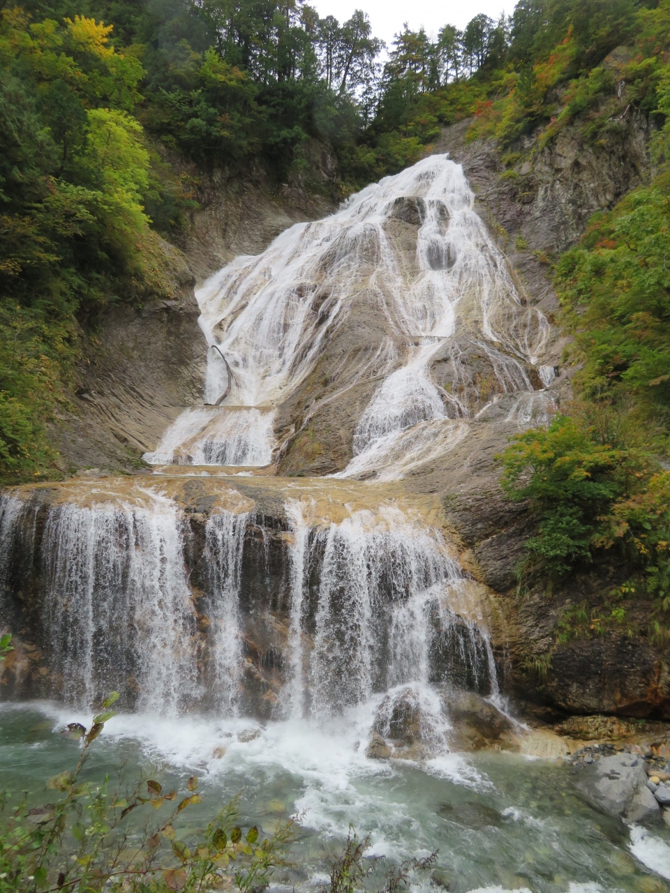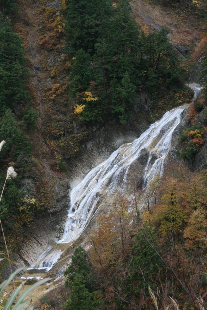 滝は袋田にも似た、斜面を多段に流れ落ちるものです。