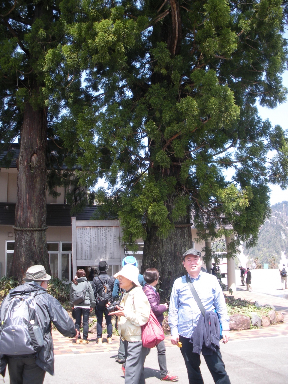 ケーブルカーと高原バスの乗り継ぎ。山々が見渡せ、美女杉も。