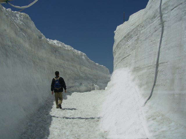 アルペンルートの一番の見どころである雪の大谷。 開通当初は20m近くの壁になっていますが、今回は5月下旬だったので、だい... 続きを読むぶ雪も減り、高さは最高で10mでしたが、それでも観光バスの屋根よりはるかに高く、圧巻でした。 次回は開通してすぐのもっと高い壁を見に行きたいと思いました。 閉じる