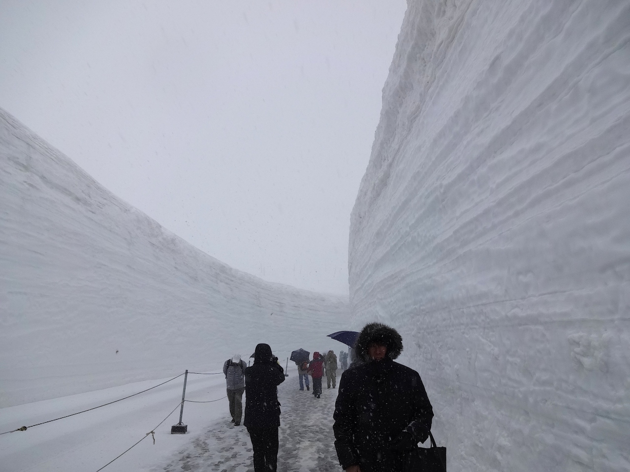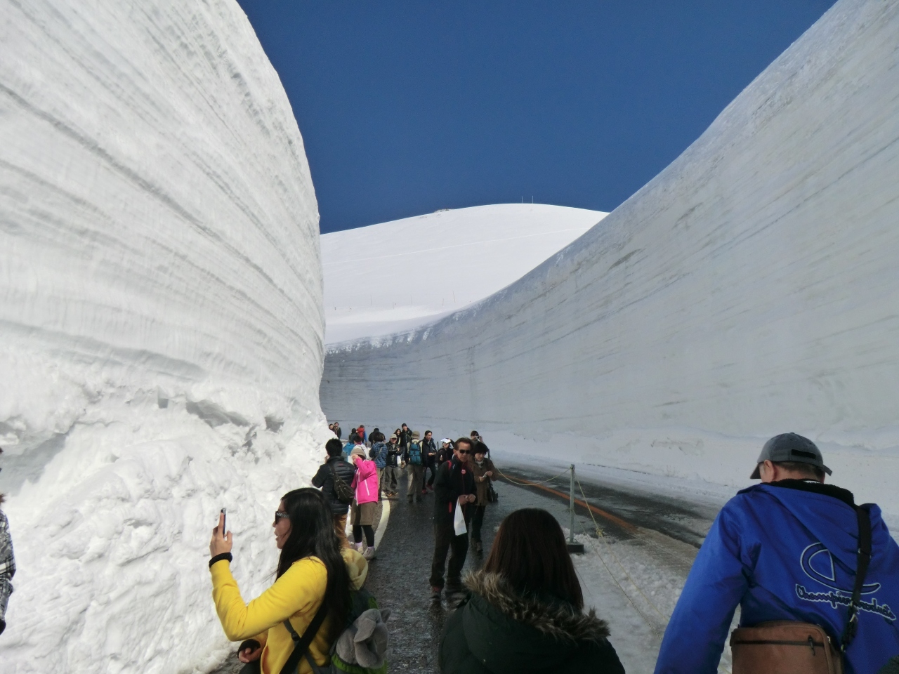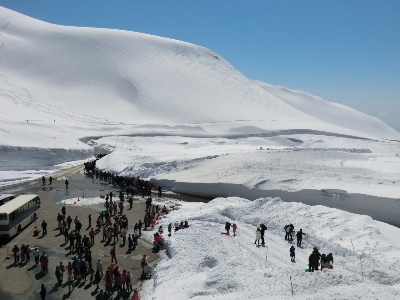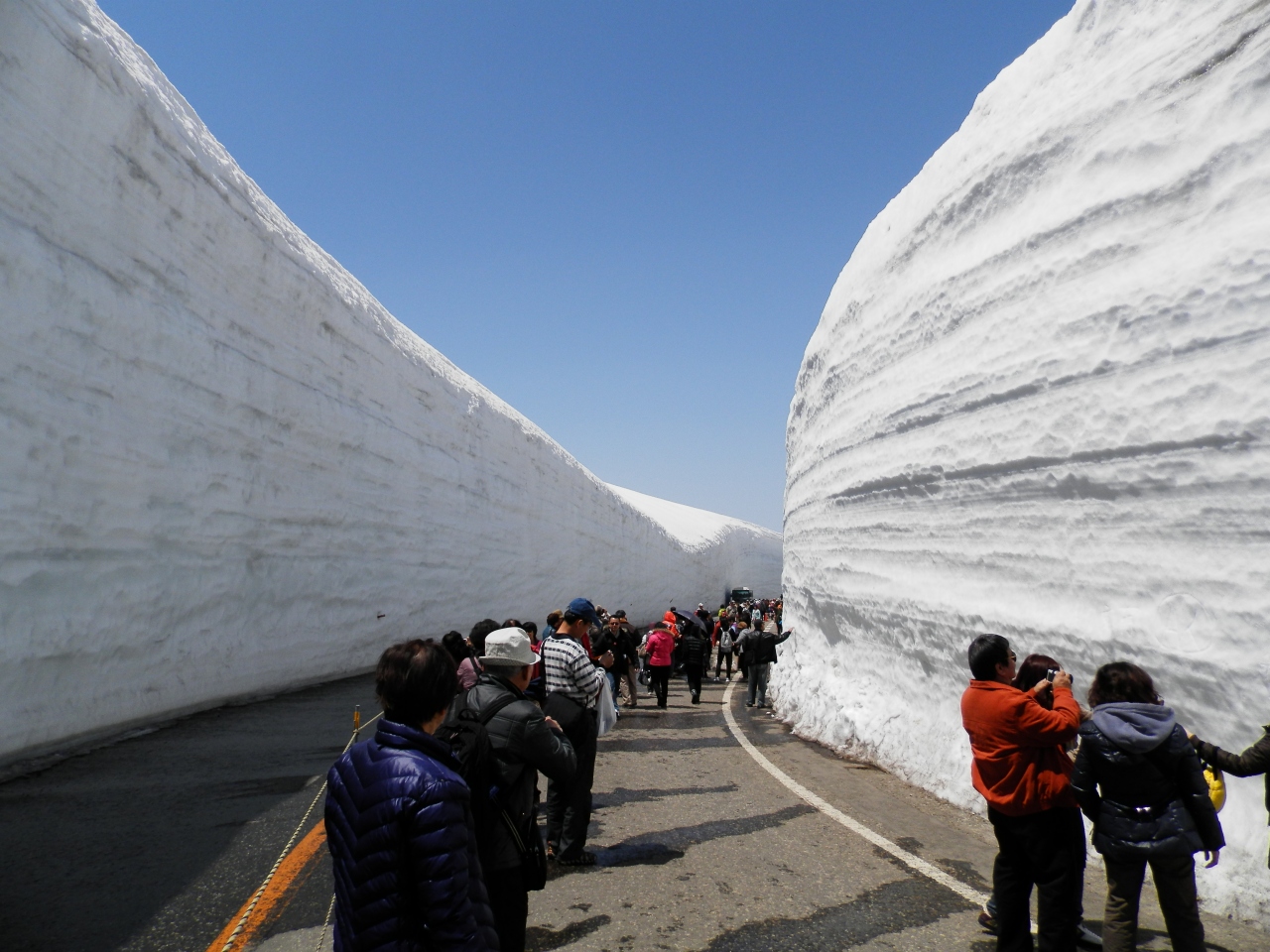 標高2450mの立山室堂平は世界でも有数の豪雪地帯であり、道路の除雪によって約500mにわたる雪の壁ができる。アルペンルート開通時の雪の壁は、高さ20mに迫る。また、6月中旬頃まで迫力ある雪の壁の中を歩く「立山・雪の大谷ウォーク」を実施している。
