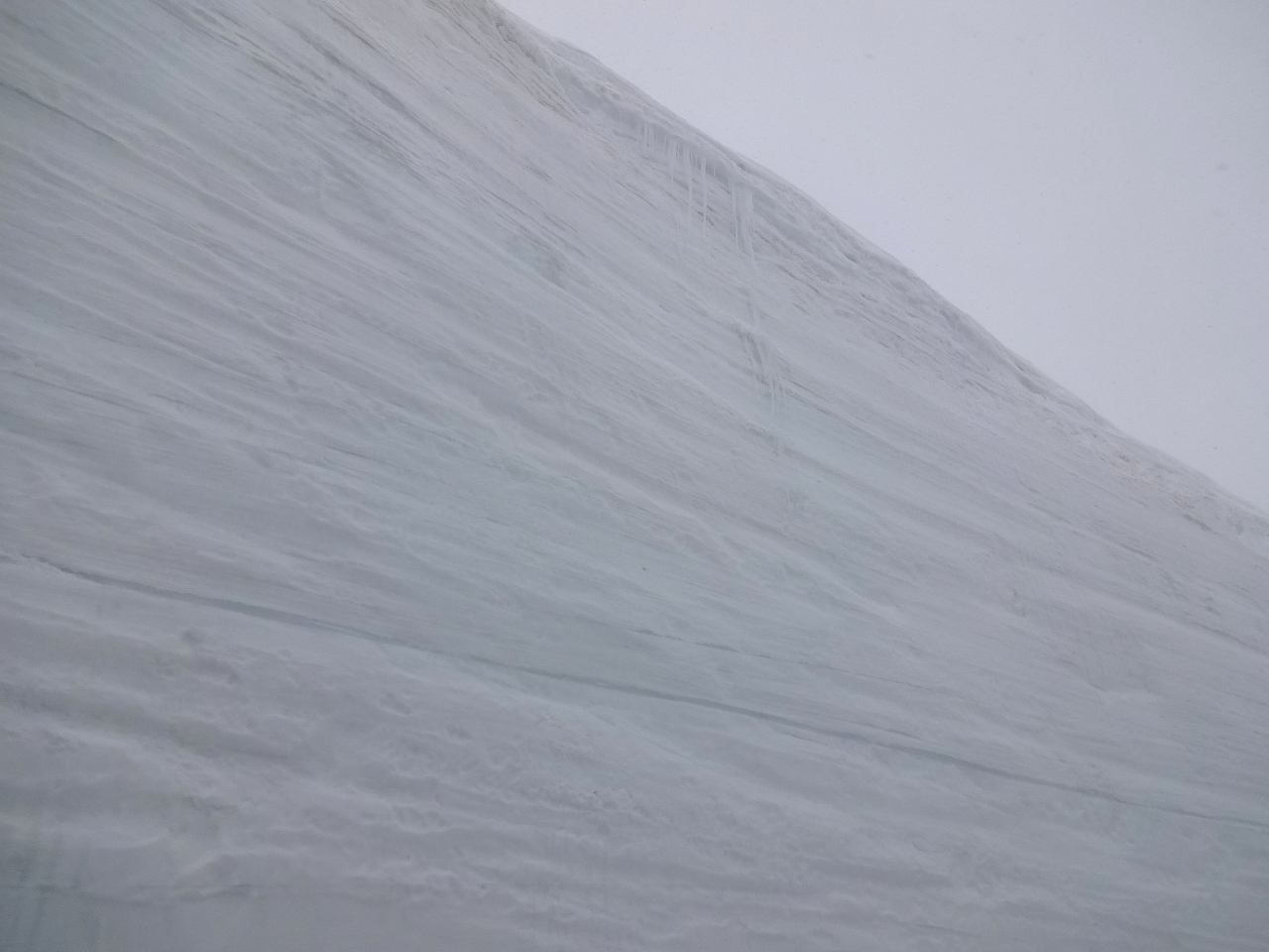 天気は悪かったのですが、雪の壁は雲の上なので、晴れていました。