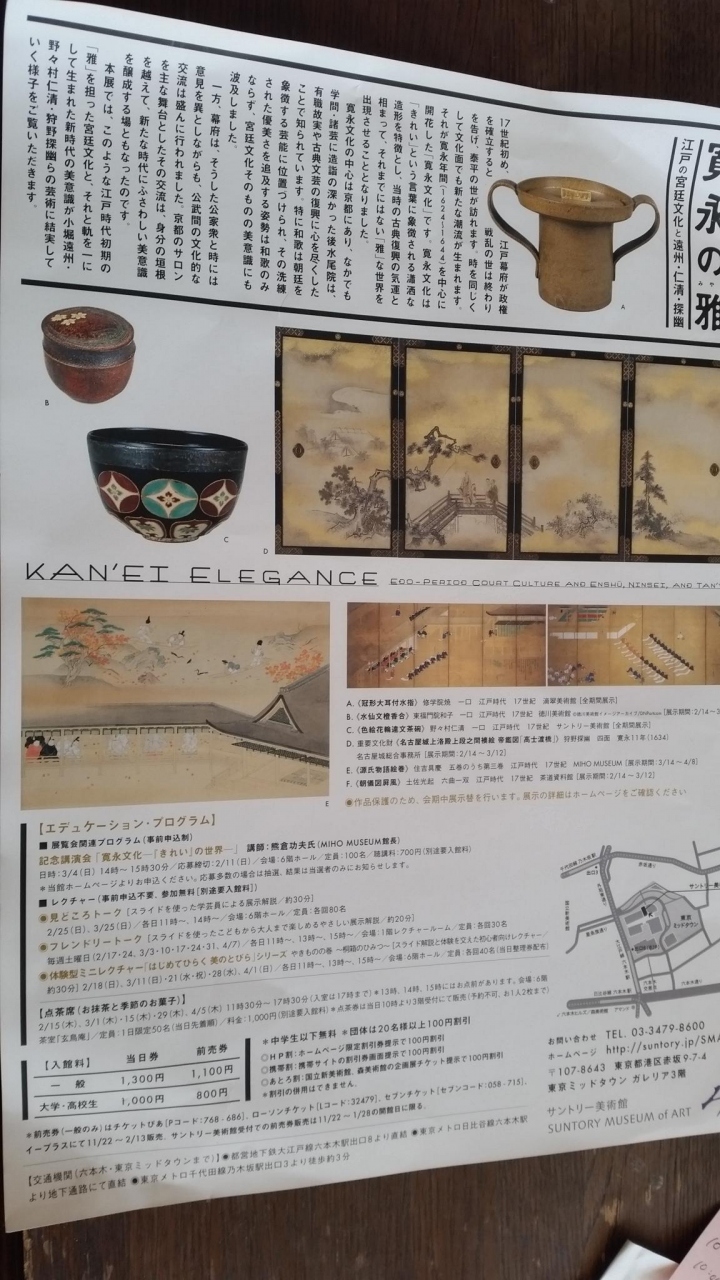サントリー美術館のコンセプトは「生活の中の美」を愉しむ、とのことです。家で使うちょっとお洒落な食器、普段歩く街並みで見付け... 続きを読むた内装のこだわった店等、美しい、とまでは行かなくても自分がいいと思った物を目にすると、心が豊かになった気持ちがします。それが「愉しむ」ことなのかも知れません。愉しむことから「本物」を求める思いが高まり、価値ある美術品に惹き付けられて行くのでしょうか。