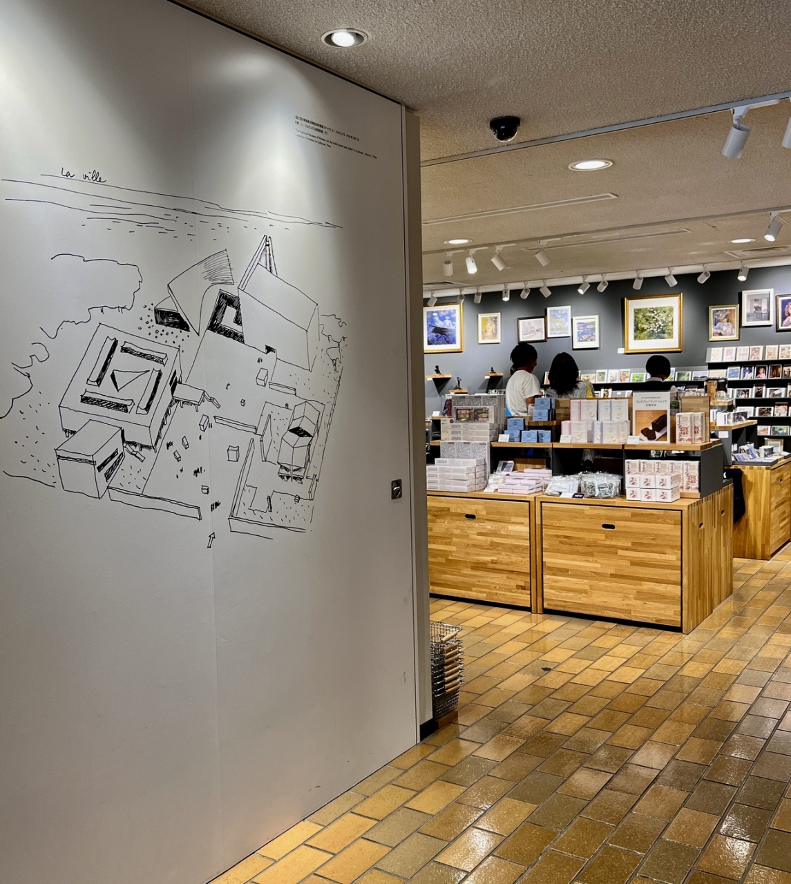 ミュージアムショップの手前の壁面にルコルビジェが描いた構想スケッチが印刷されています。