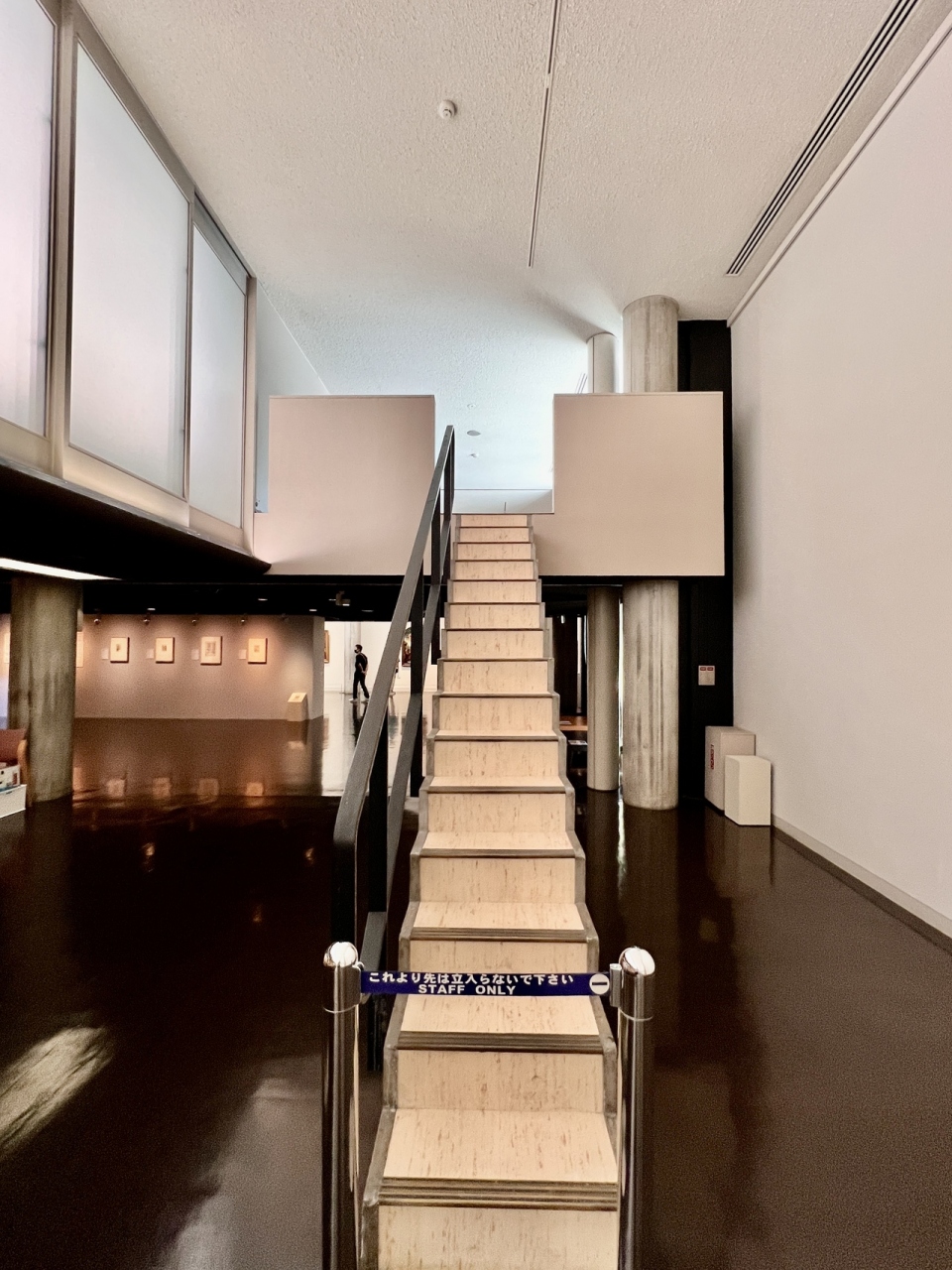 また、絵画と対面するように椅子がないことも残念。企画展なら混雑故に仕方ないが、常設展は絵画に向き合う位置にもっと椅子があるのとよいなぁと思う。