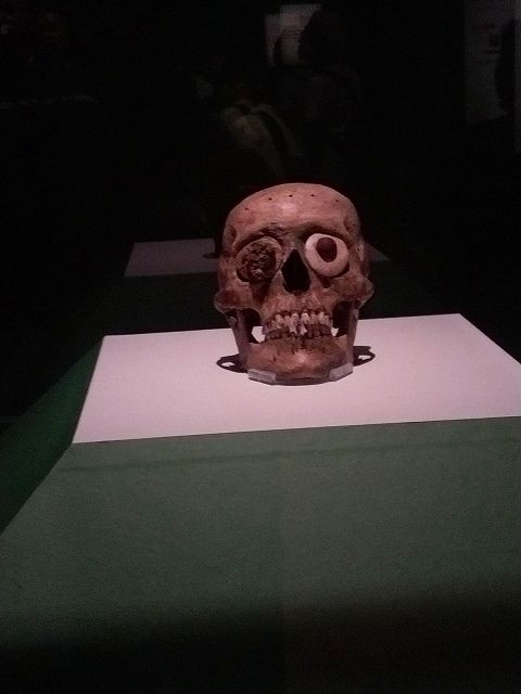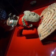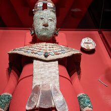 展示では、赤の女王のマスクが神秘的で美しい。パカル王妃であろうと推測される墓の主が付けていたマスクとして様々な装飾品ととも発見された。
