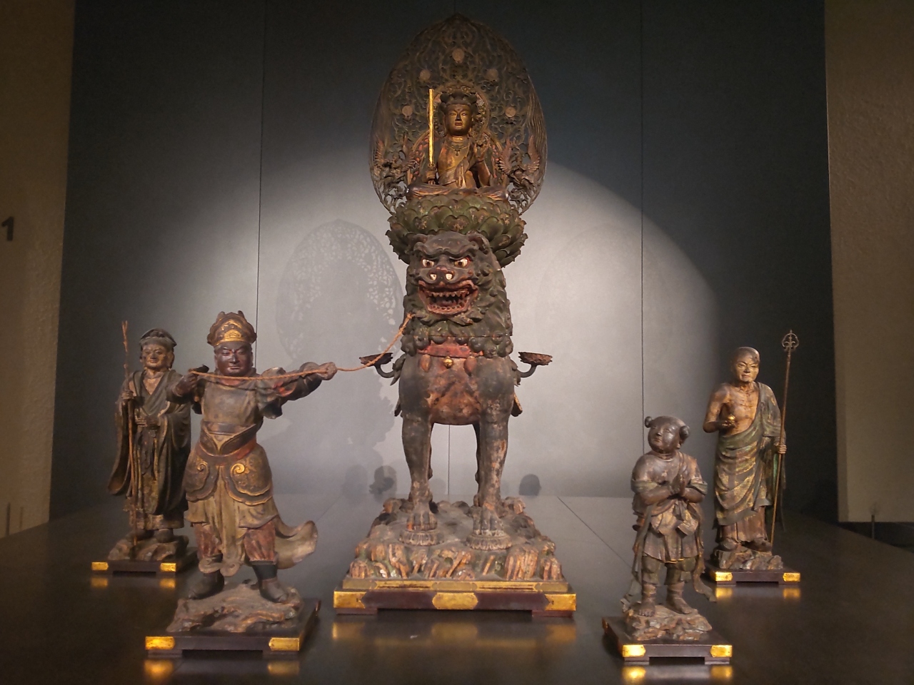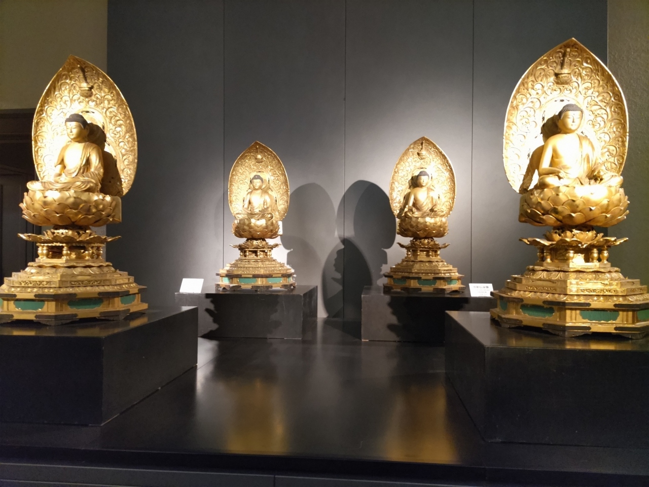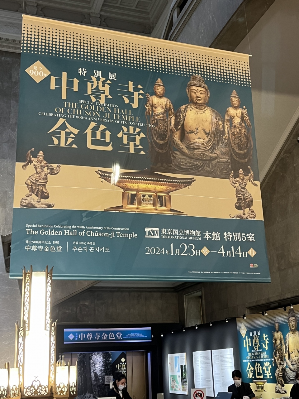 中尊寺展はかなり混雑しており、ゆっくりと見るのは難しかった。1つの展示物に3重に人が重なって見る感じでした。また展示室内は国宝保護のため照明を落としているので、歩く際に注意が必要です。