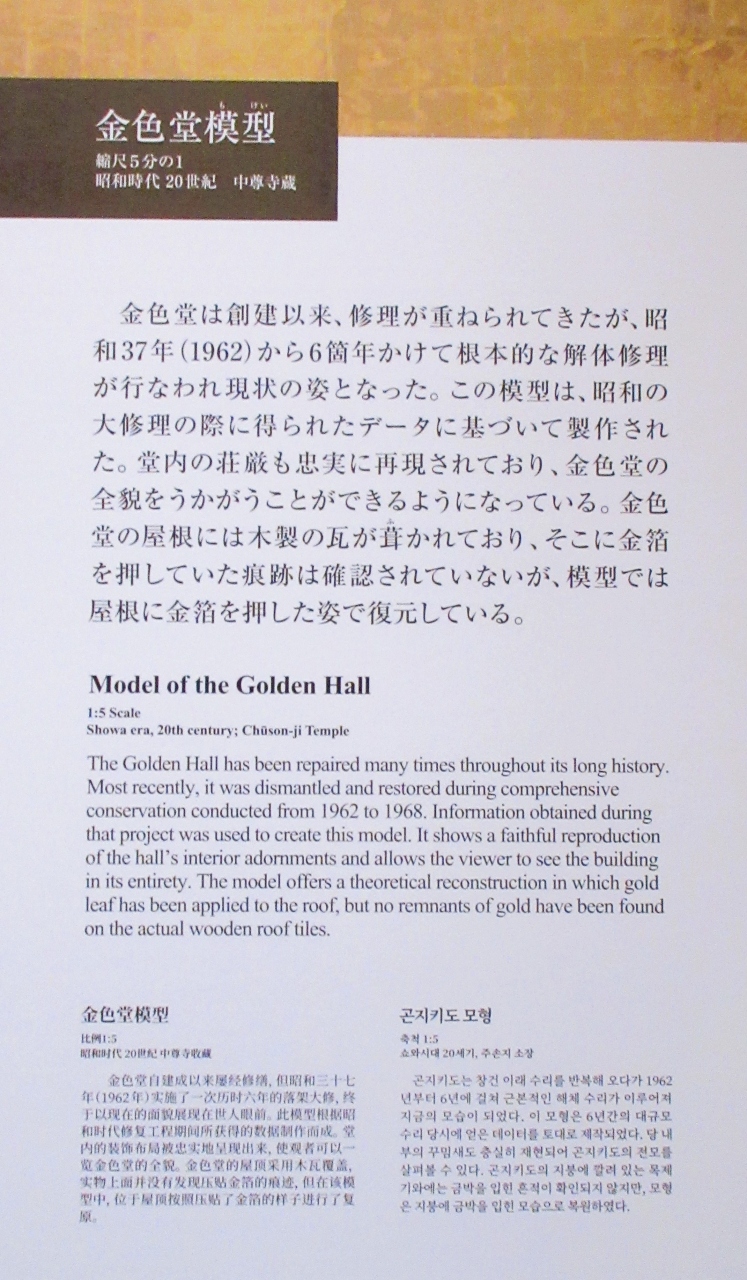 入ってすぐの場所に原寸大の金色堂を8KCGで再現しているので中央や... 続きを読む後ろの須弥壇の仏像の様子がよく分かりました。