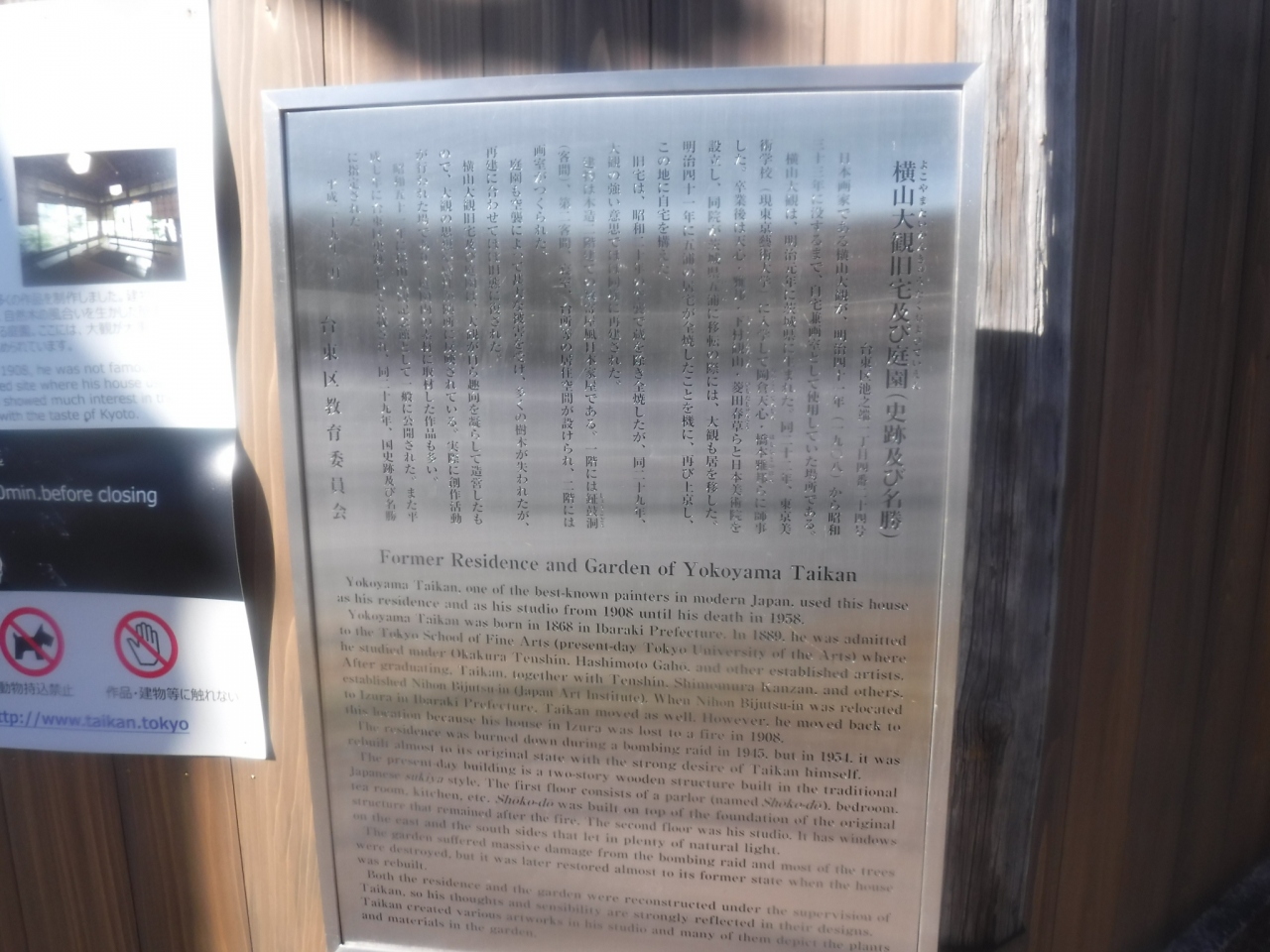 上野の不忍池の畔、不忍通り沿いにあります。日本画家横山大観のこだわりの家兼アトリエが当時のまま残されています。 家の周り... 続きを読むは近代的なのに、ここだけ時間が止まったような、異空間でした。 横山大観の生活ぶり、制作風景など知ることができます。 こだわりの詰まったお屋敷の二階がアトリエで、夕方早い時間に、色が変わって見えてくるという理由で、制作は切り上げ、一階で晩酌。その部屋もこだわりがあり、庭も素晴らしく、やはり、一般人とは違うんだと、見ごたえのある記念館です。 本物の絵も観ることができ、感動ものです。写真より本物のようで見入ってしまいます。 閉じる