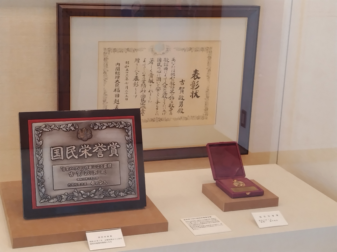 作曲に使っていた部屋や、歌手がトレーニングをしていた部屋、古賀政男のコレクション、国民栄誉賞の表彰状や盾などが展示されています。