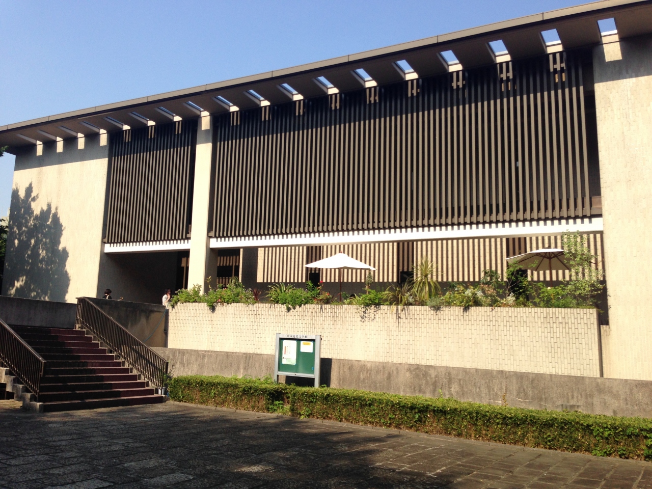 日本近代文学館は、駒場公園の中。コンクリート造りのしっかりした建物です。