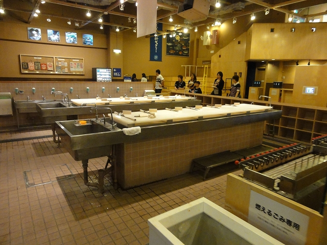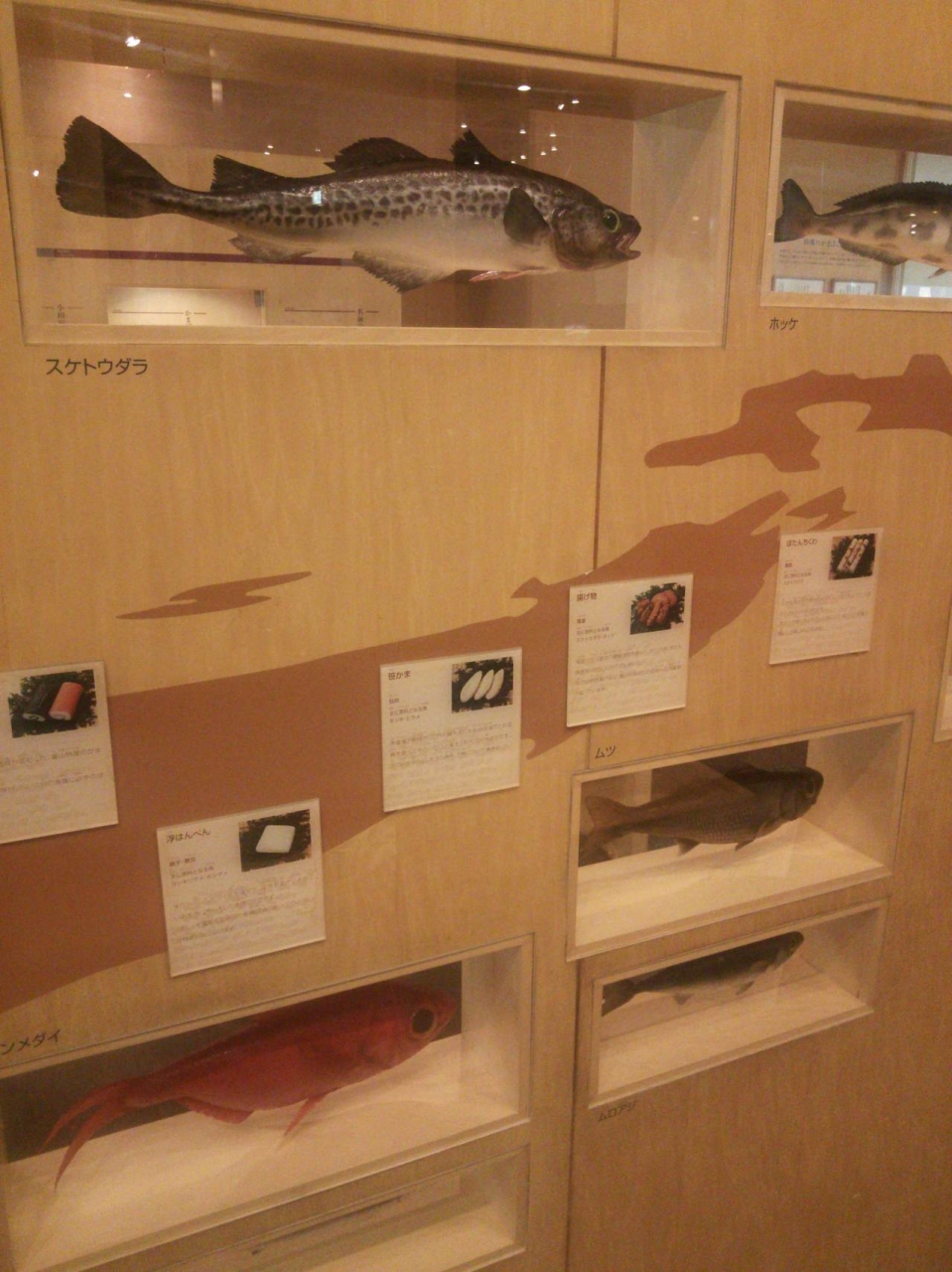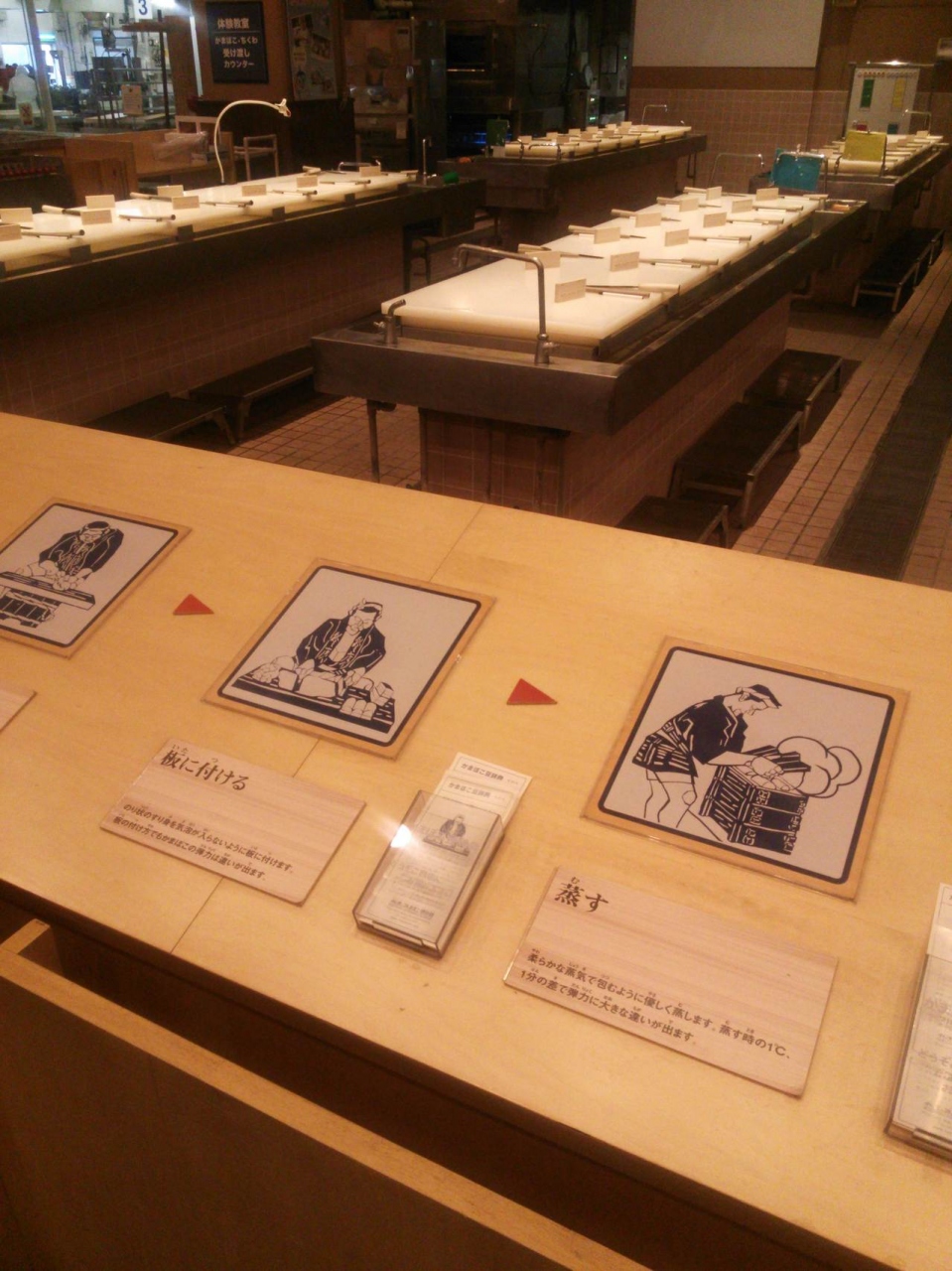 1階にそういったスペースの他、実際にかまぼこ作りを体験できる調理スペースと試食できる座敷スペース、職人によるかまぼこ作りがガラス越しに見学できるスペースがありました。体験と試食は予約制である程度の団体単位なようでした。