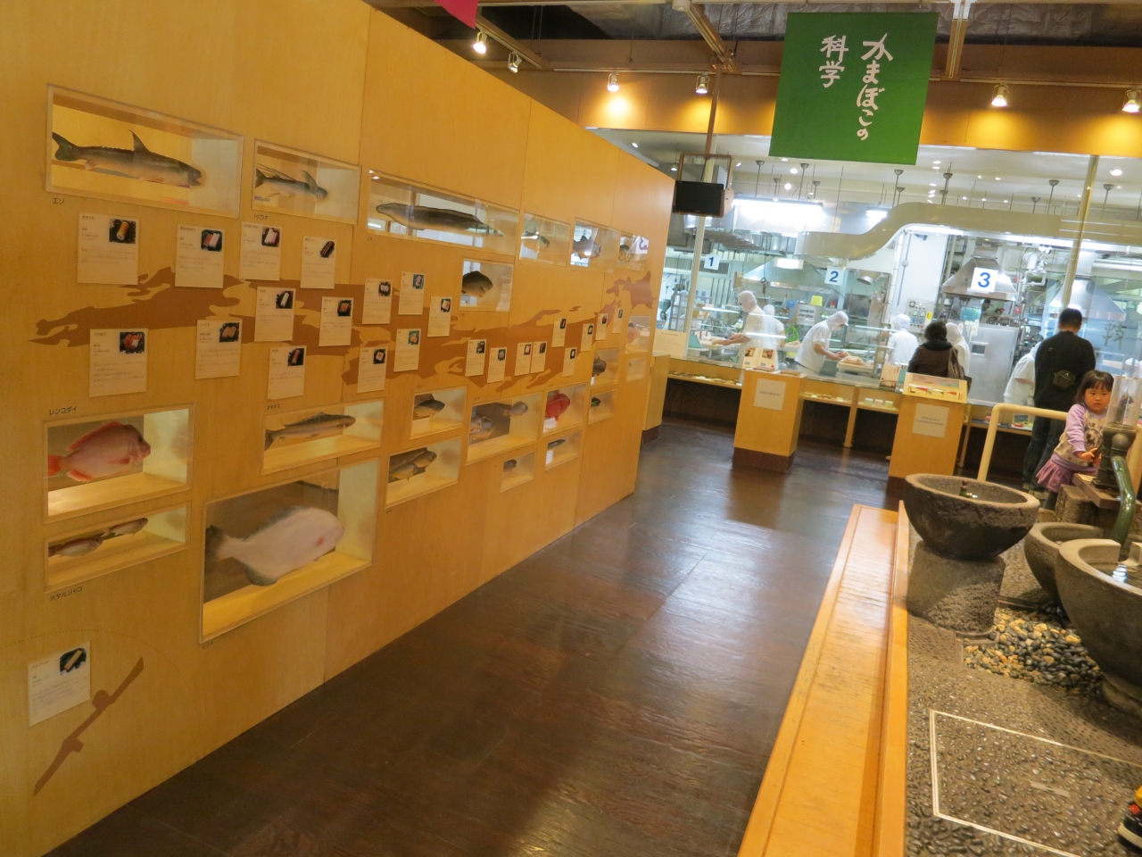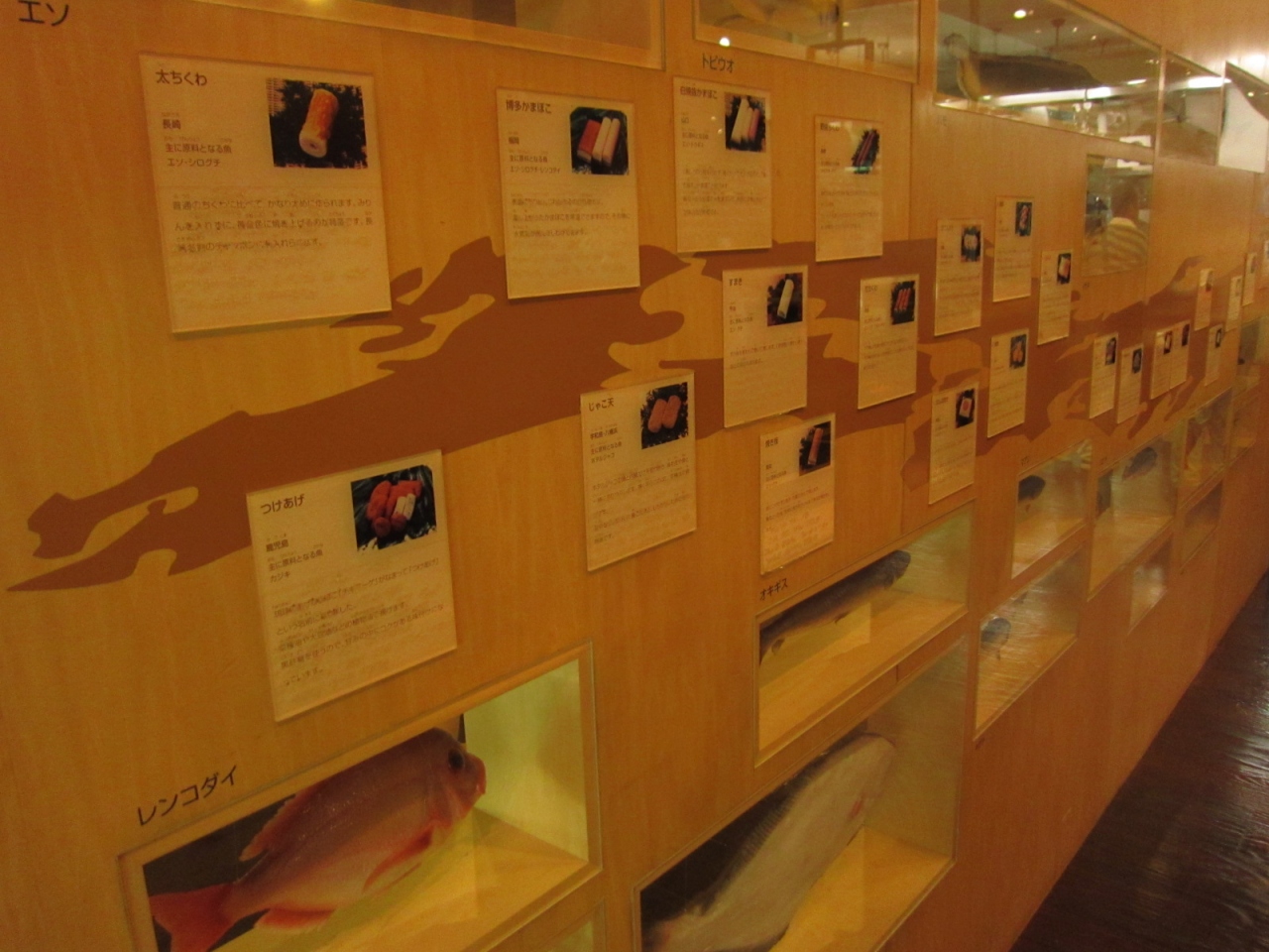作り方やかまぼこに関する謎や疑問をただ写真や文章で展示するだけではないので小学校の校外学習にはもってこいといった施設でした。のぞきこんで映像が見られたり、ポンプを漕いで水を出したり、クイズの答えもかまぼこ型の模型に張られているなど体感して楽しく学べる工夫があります。
