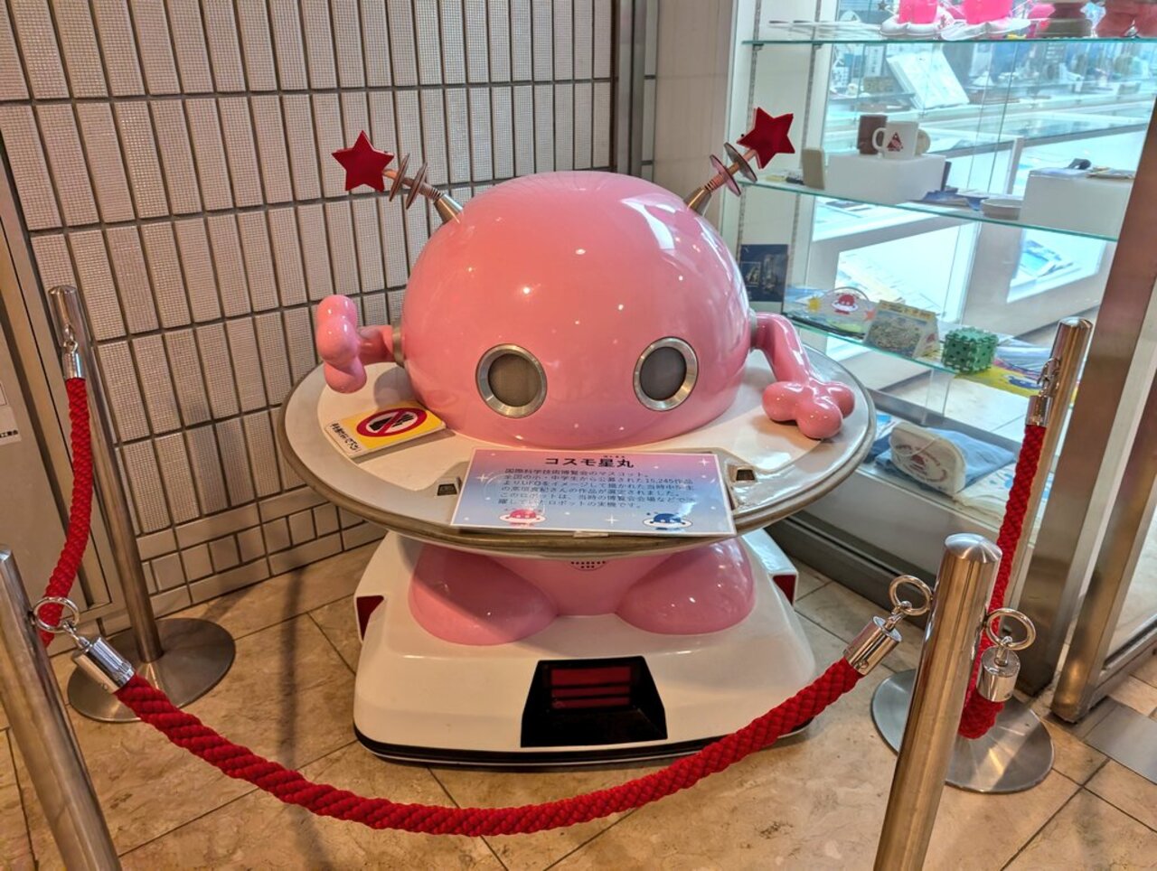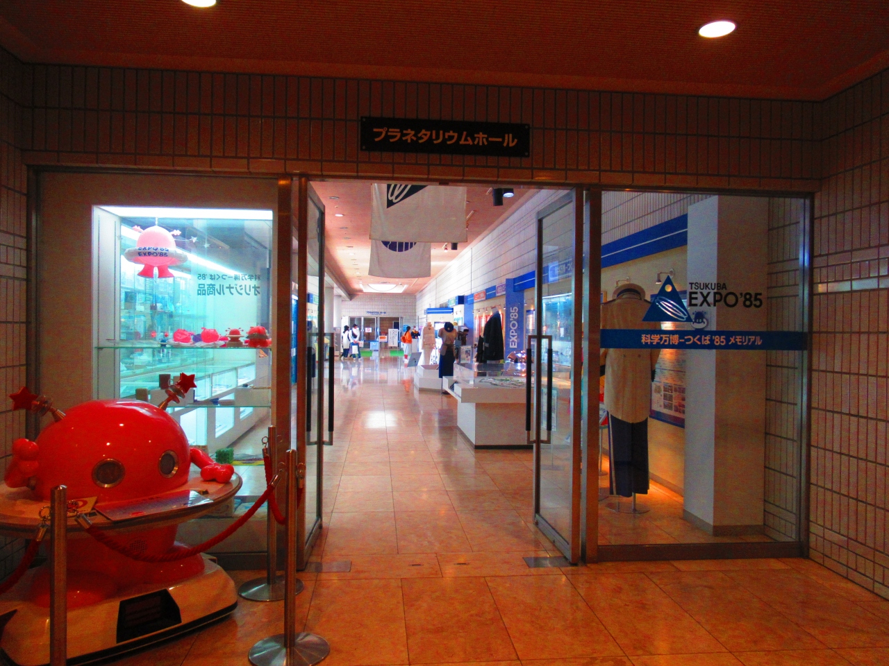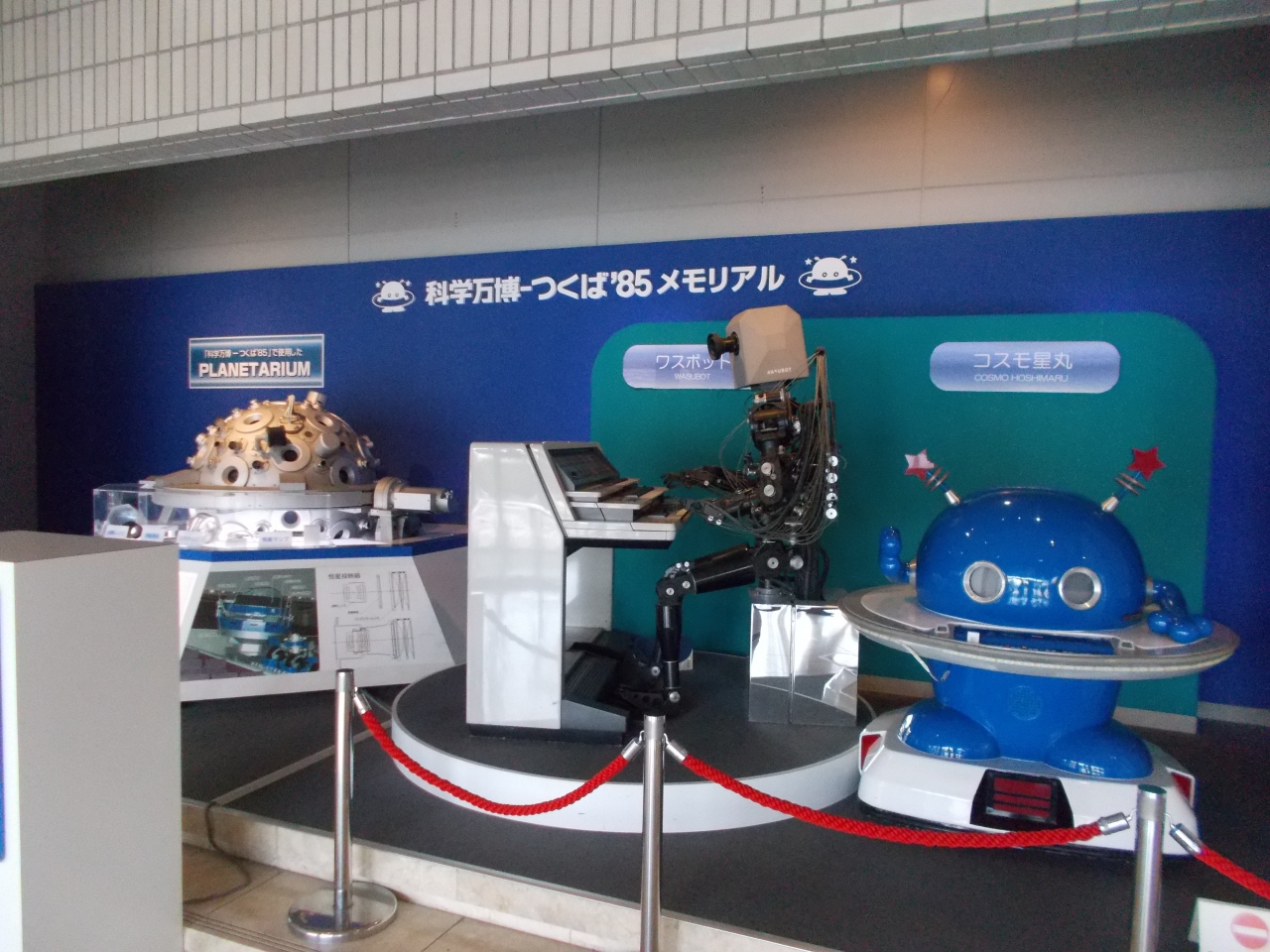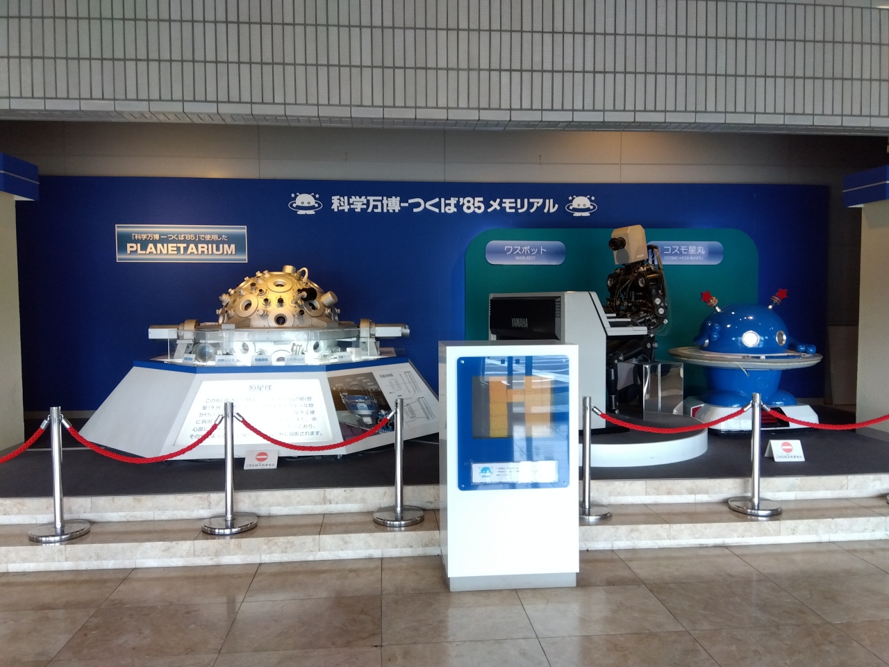 1階の「科学万博‐つくば’85メモリアル」は、当時の資料、映像、ロボット、制服、記念品、グッズなどが展示されており、懐かしさでいっぱいでした。