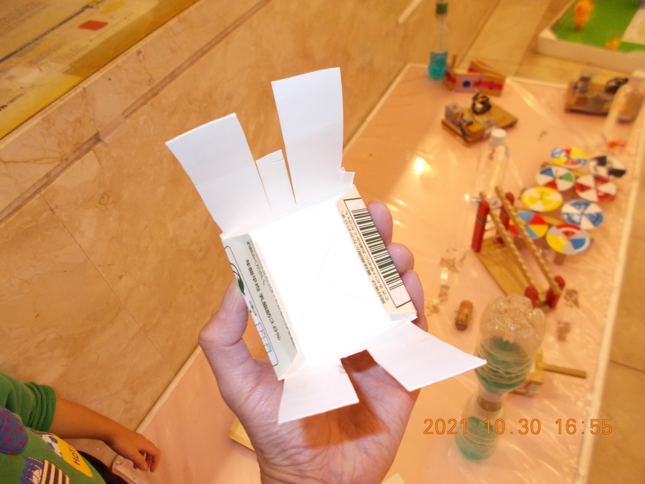 人気がある展示物、特に体を使うものはなかなか空かず、「大型シャボン玉装置」(大きなシャボン玉の中に入る)は断念しました。