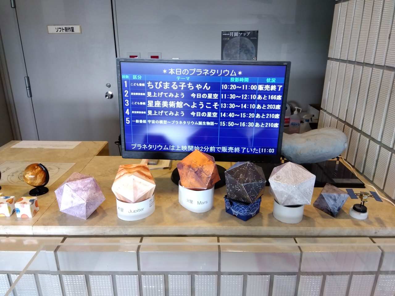 また、1Fにはメインのプラネタリウムがあり、1時間半ぐらいあれば回れるかと思いますので、時間を調整して予約するのが良いかと思います。