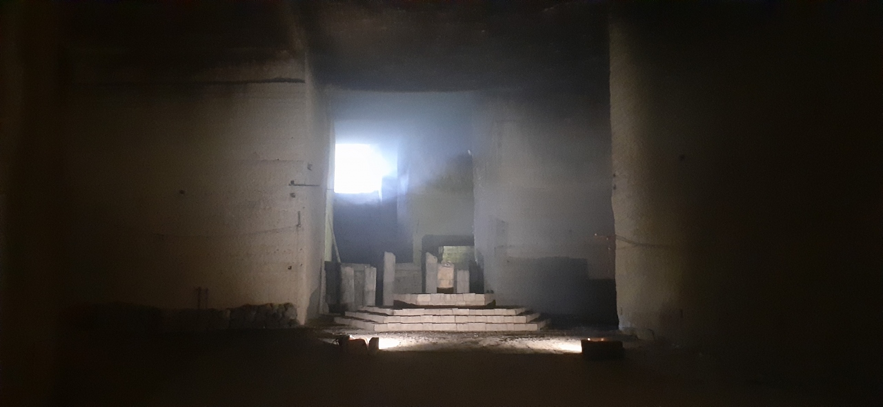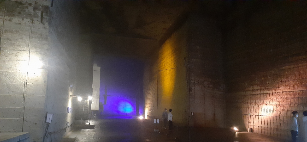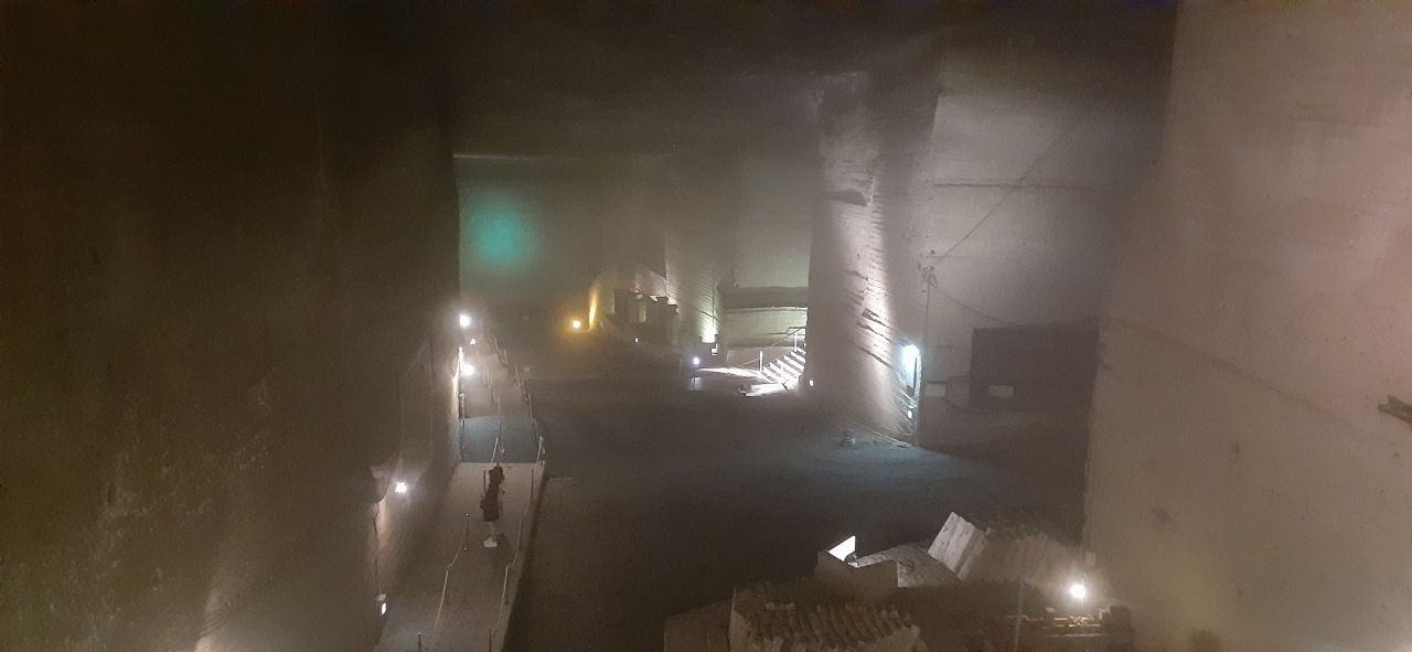 坑内に入り階段を下りて行くと、野球場がすっぽり入ってしまう程の広大な空間が