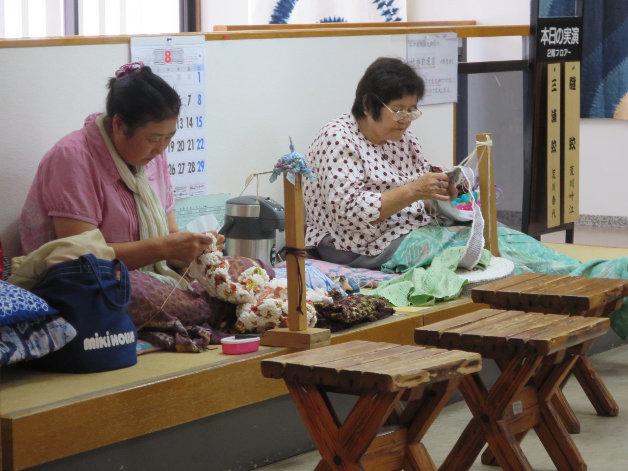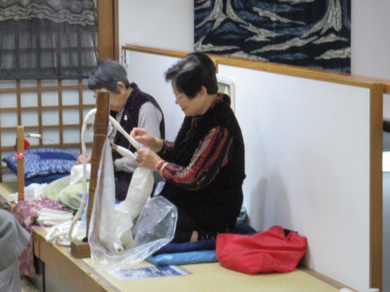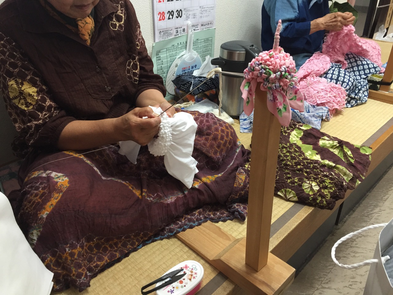 有松 鳴海絞会館の2階では有松絞の実演を見学できました。
