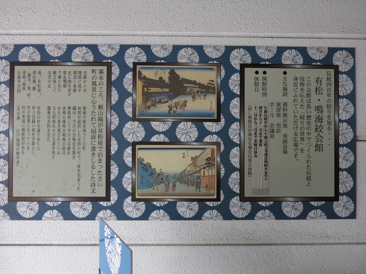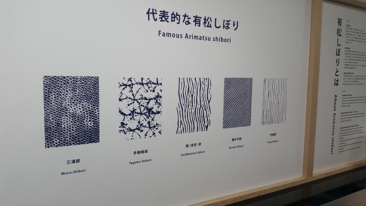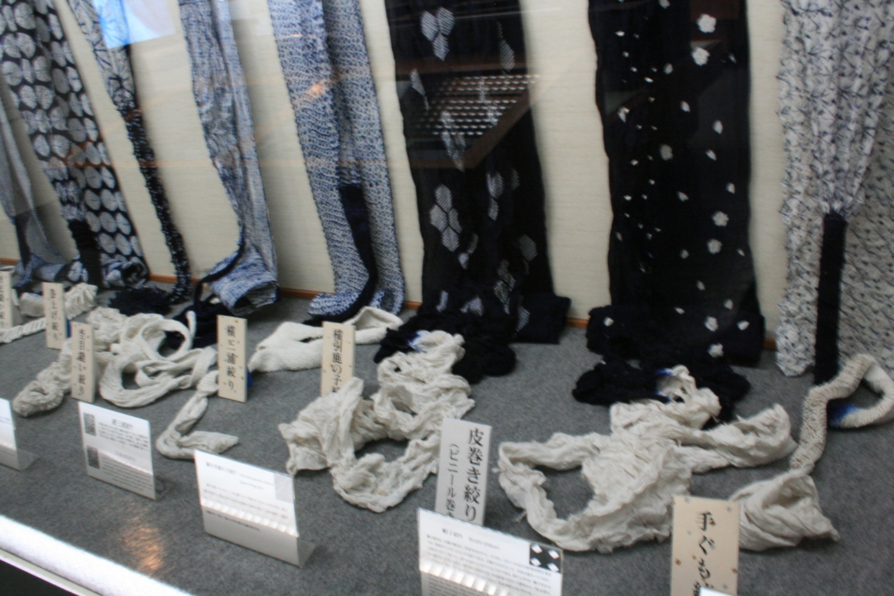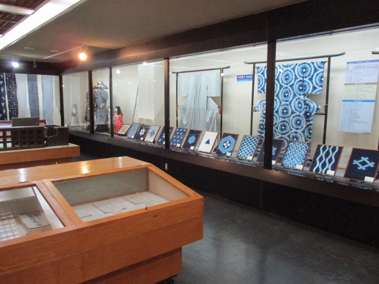 有松・鳴海絞り会館は旧東海道沿いの古い町並みの一角にあり、1階はお土産物などの販売をしており、入場料のいる2階で有松絞りに関する資料や道具を展示、実演していました。