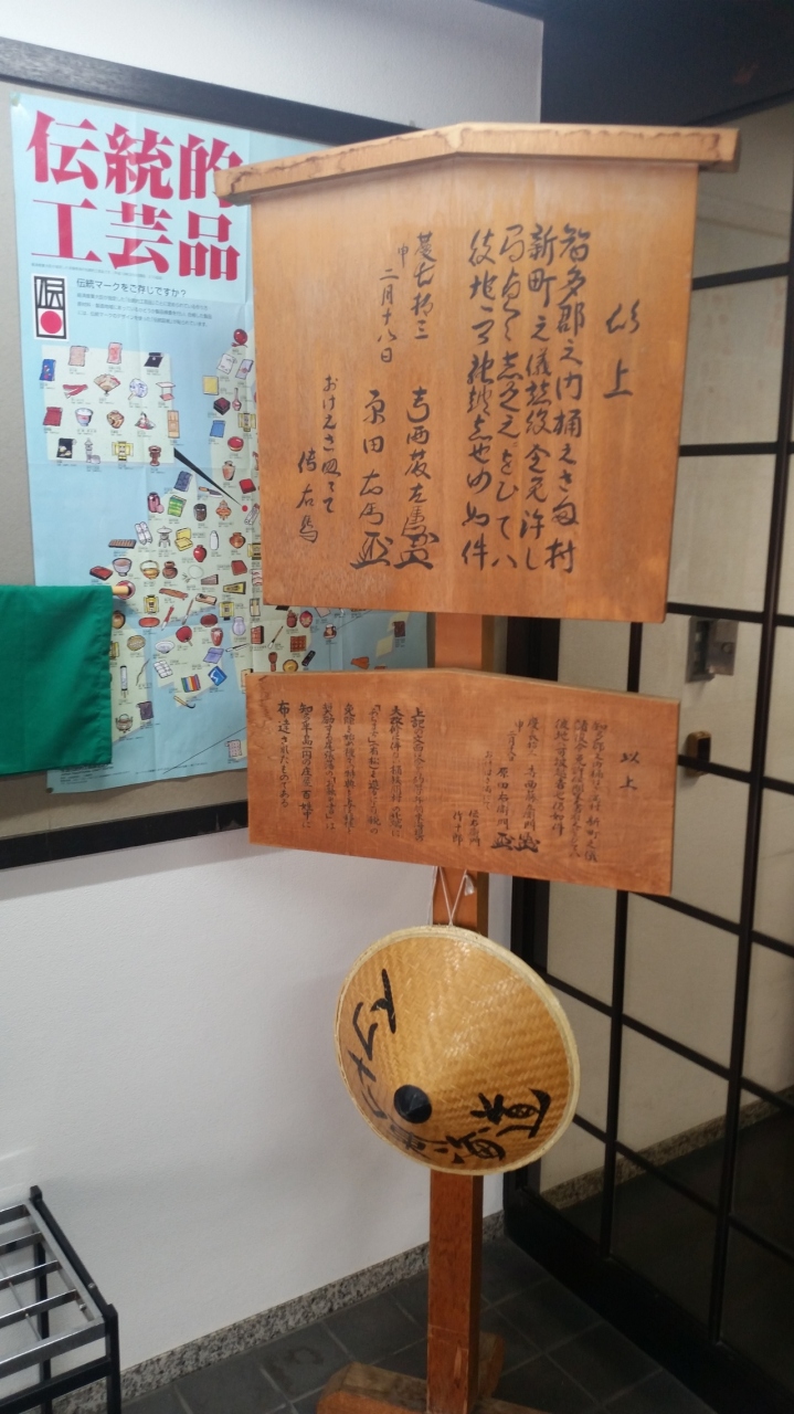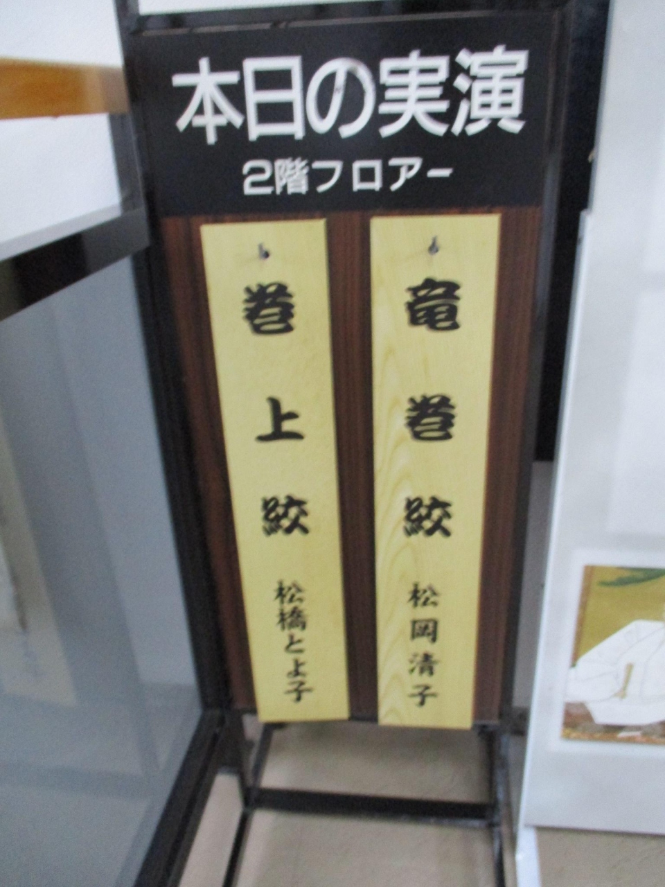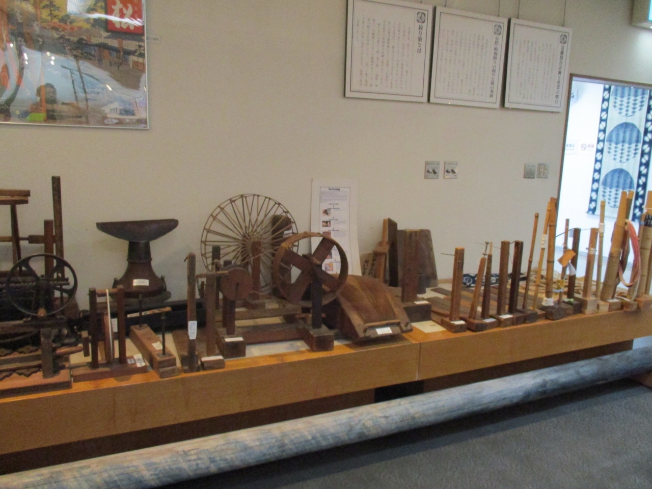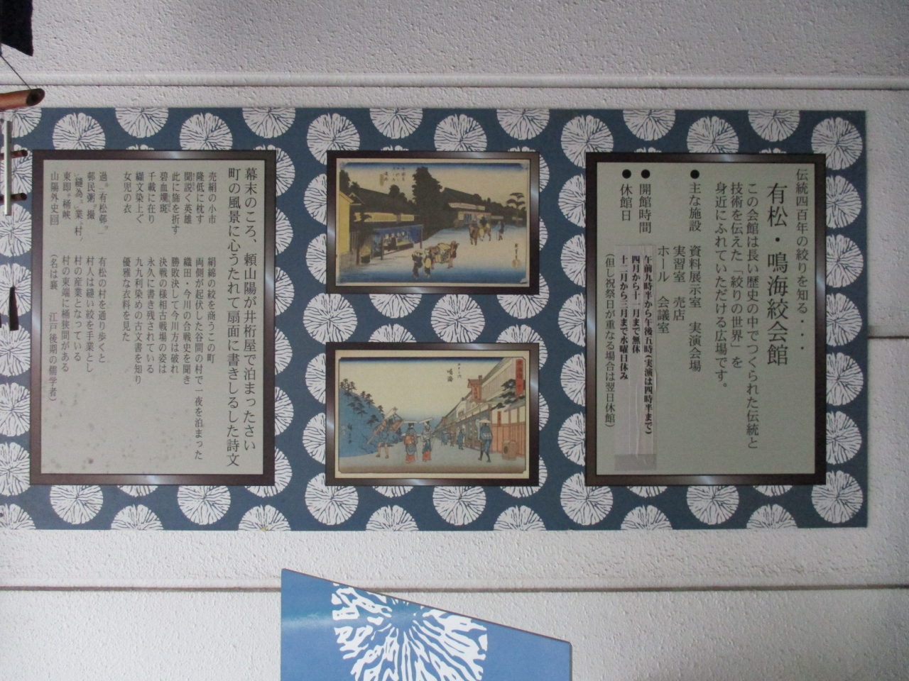 有松・鳴海絞り会館は旧東海道沿いの古い町並みの一角にあり、1階はお土産物などの販売をしており、入場料のいる2階で有松絞りに関する資料や道具を展示、実演していました。