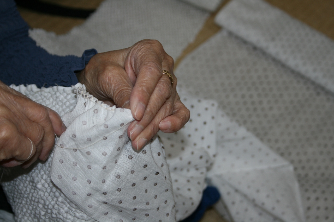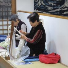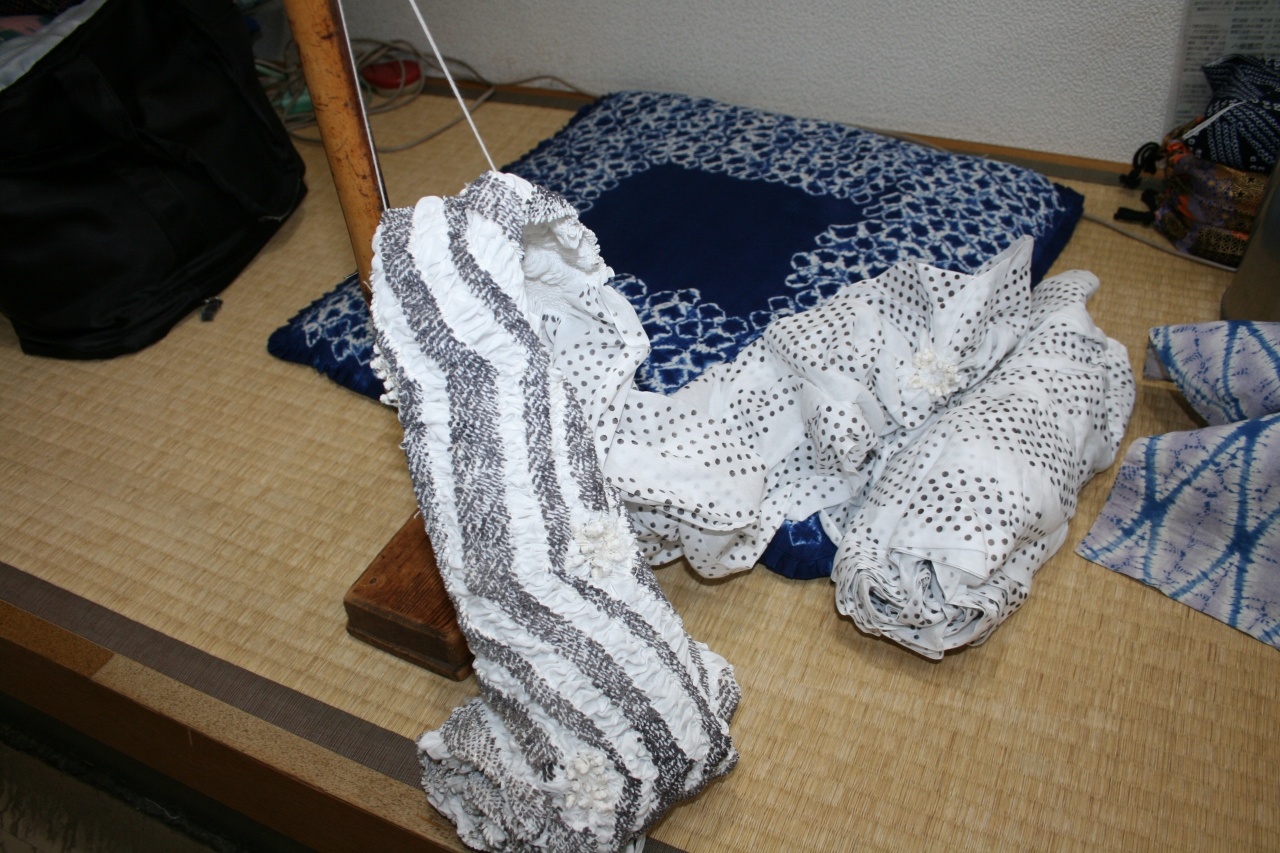 絞りは120種類くらいあったようですが、今は70種ちょっと。鹿の子絞りくらいしか知りませんが、なかなかそんなに単純なものではないようです。絹だと絞った跡が立体的に残るのですが、木綿だと残らないとか。なるほどねといった話を聞いて、けっこう盛り上がりました。 閉じる投稿日:2017/02/06