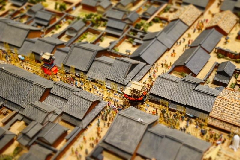 「からくり」より、こちらの方がなじみやすく、お城と城下町について、ジオラマ模型、映像、音声、展示物により、わかりやすく説明されています。
