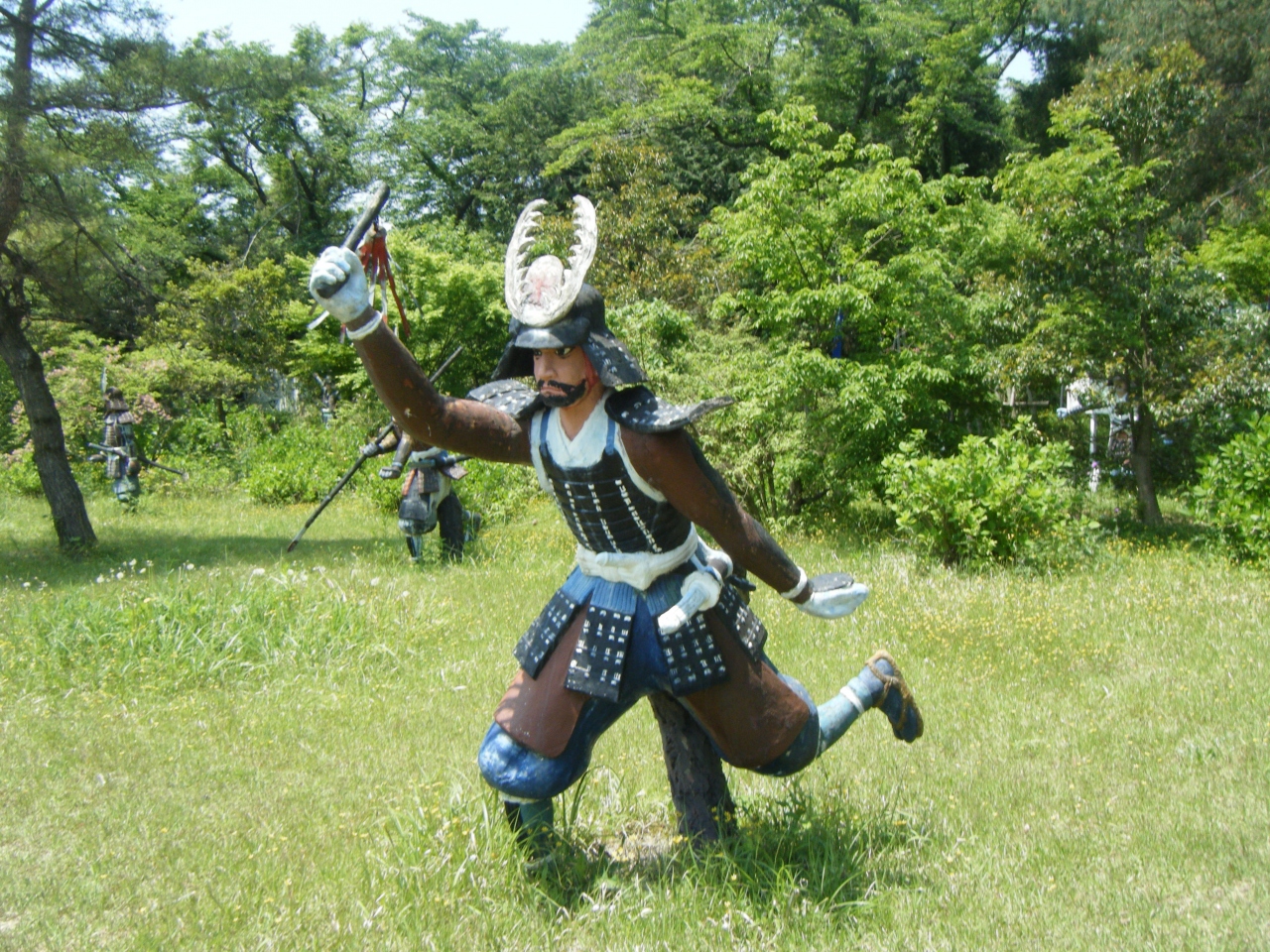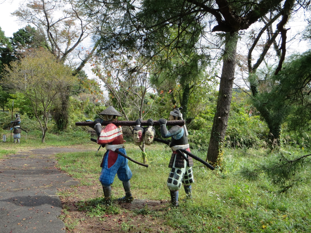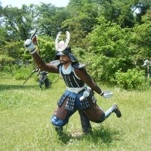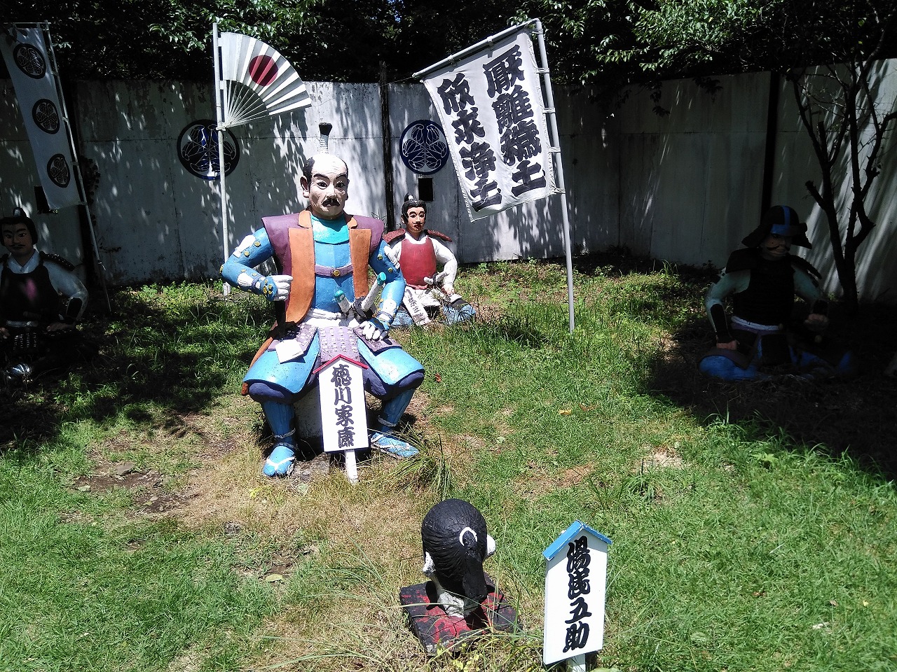 浅野祥雲先生によるコンクリート彫刻の武将が多数配置されています。