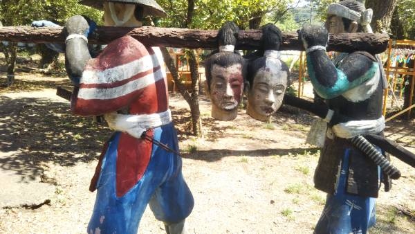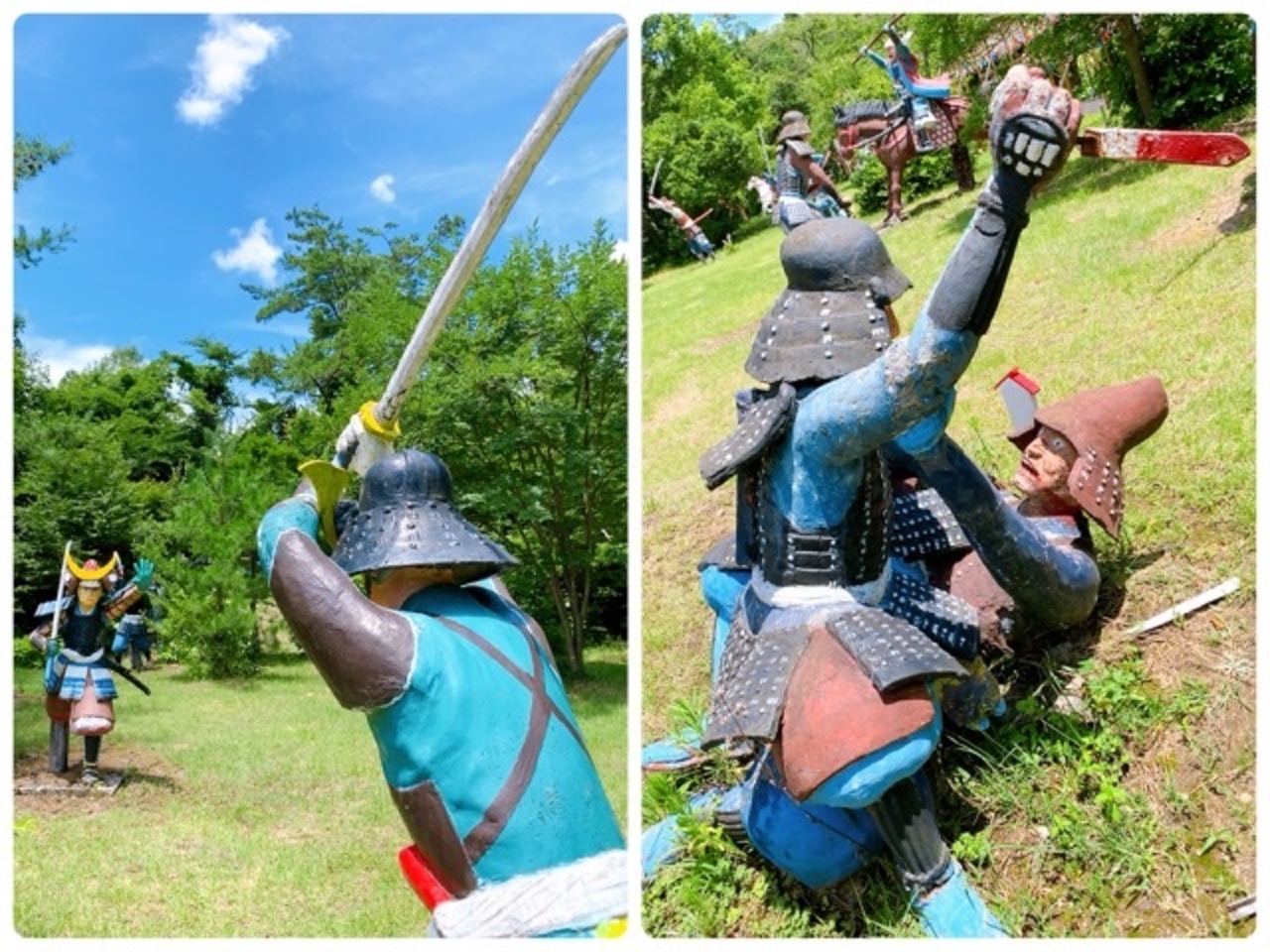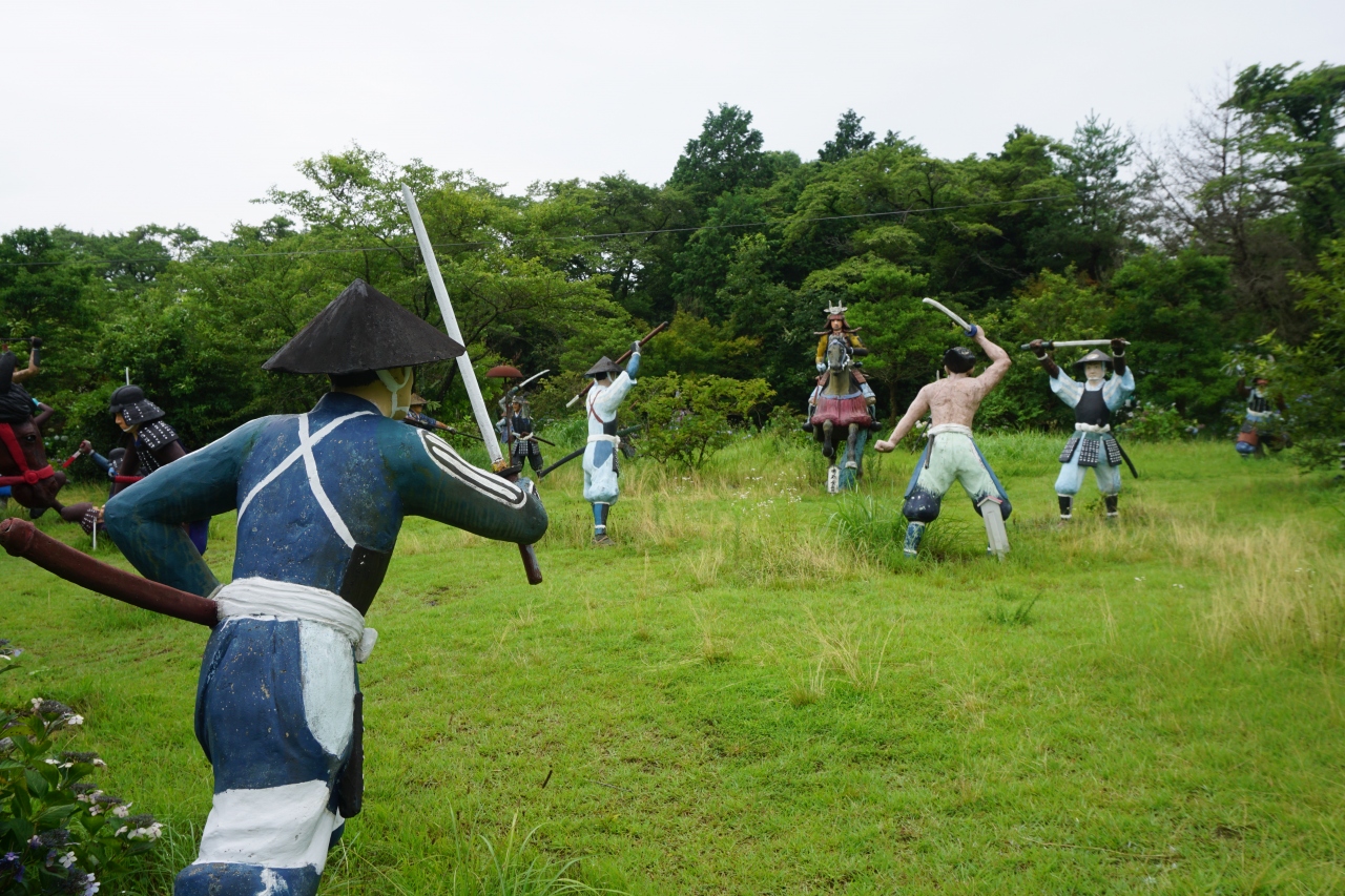 コンクリートで作られた戦国武将の像たちが、関ヶ原の合戦の様子を再現している施設です。 かなり周りの環境が自然豊かなのも、関ヶ原の合戦当時もこんな感じで行われていたのかな?と想像できる、なかなか面白い展示の数々。 1964年オープンだそうで、CGのなかった時代はこういうのがウケたのかな?って感じですね。 屋外に設置されたコンクリートの像は、かなり古くはなってますけど、かなりリアル! カメラを構える角度によっては、本当に自分が当時の合戦の場にいたかのように感じられるものもあって、なかなか楽しかったです!