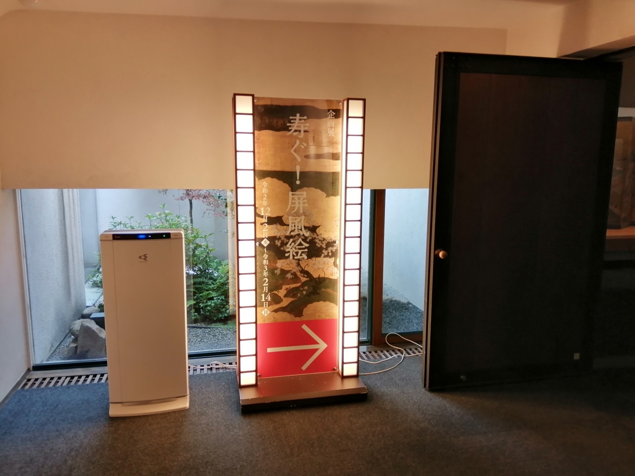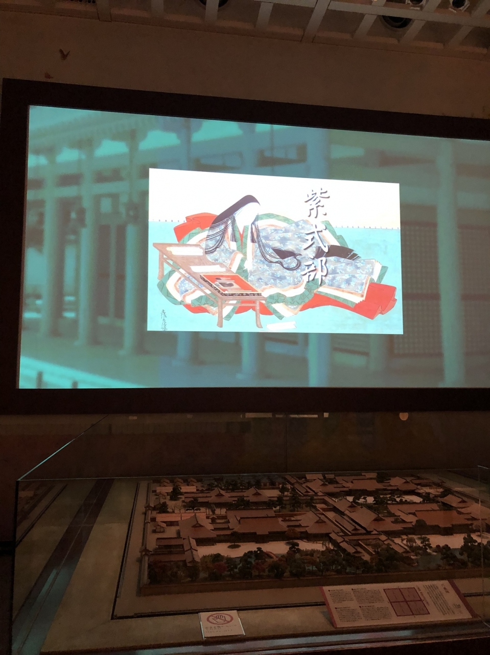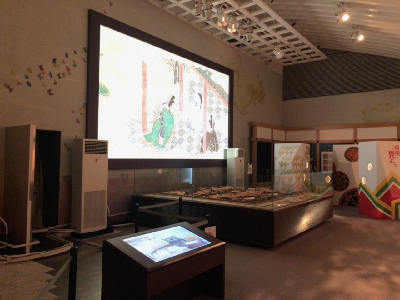 常設展示室では、実物大の牛車や調度品の復元のほか、光源氏の邸宅である六条院の縮小模型などを展示する。2018年9月のリニューアルでは、ここでしかできない体験型展示の導入や多言語化の充実を図った。映像展示室では、2019年4月から新作アニメ「GENJI FANTASY ネコが光源氏に恋をした」の上映を開始。