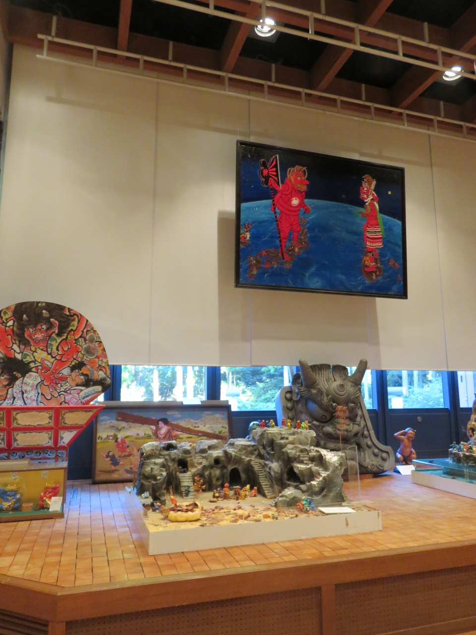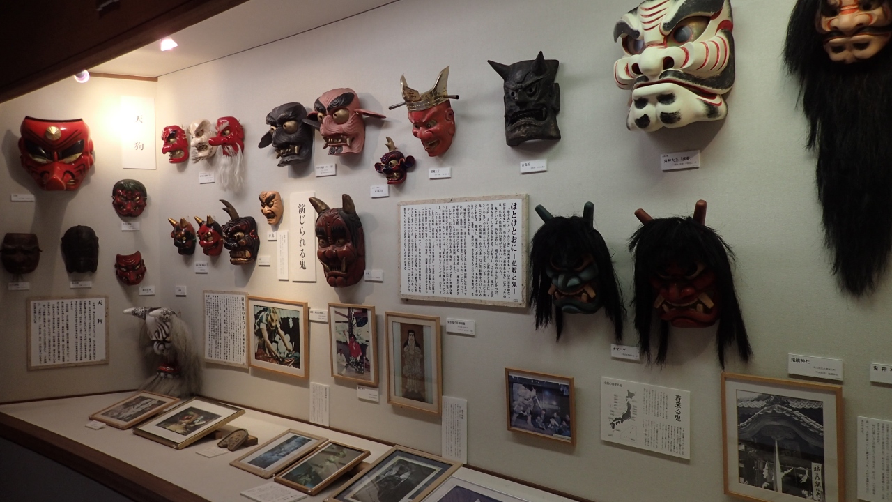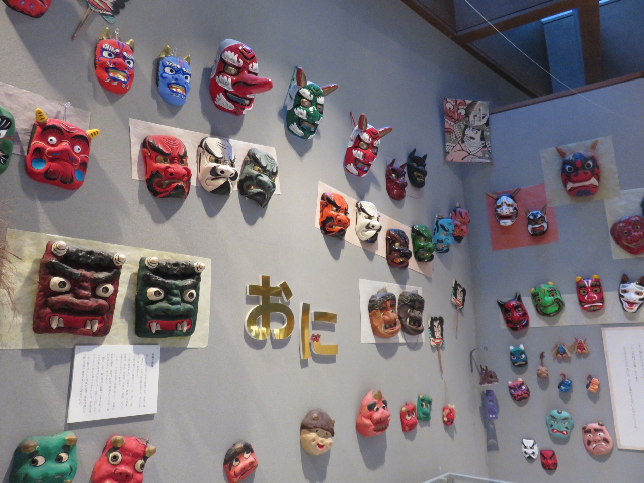 まさに酒呑童子伝説を生んだ大江山を擁する土地柄らしい施設で、小さいながらも見どころが沢山、民俗学に基づいた「鬼」に対する解説から始まり、芸能・信仰・文化…等々、多角的な方面から鬼の存在を分析している展示が興味深い。