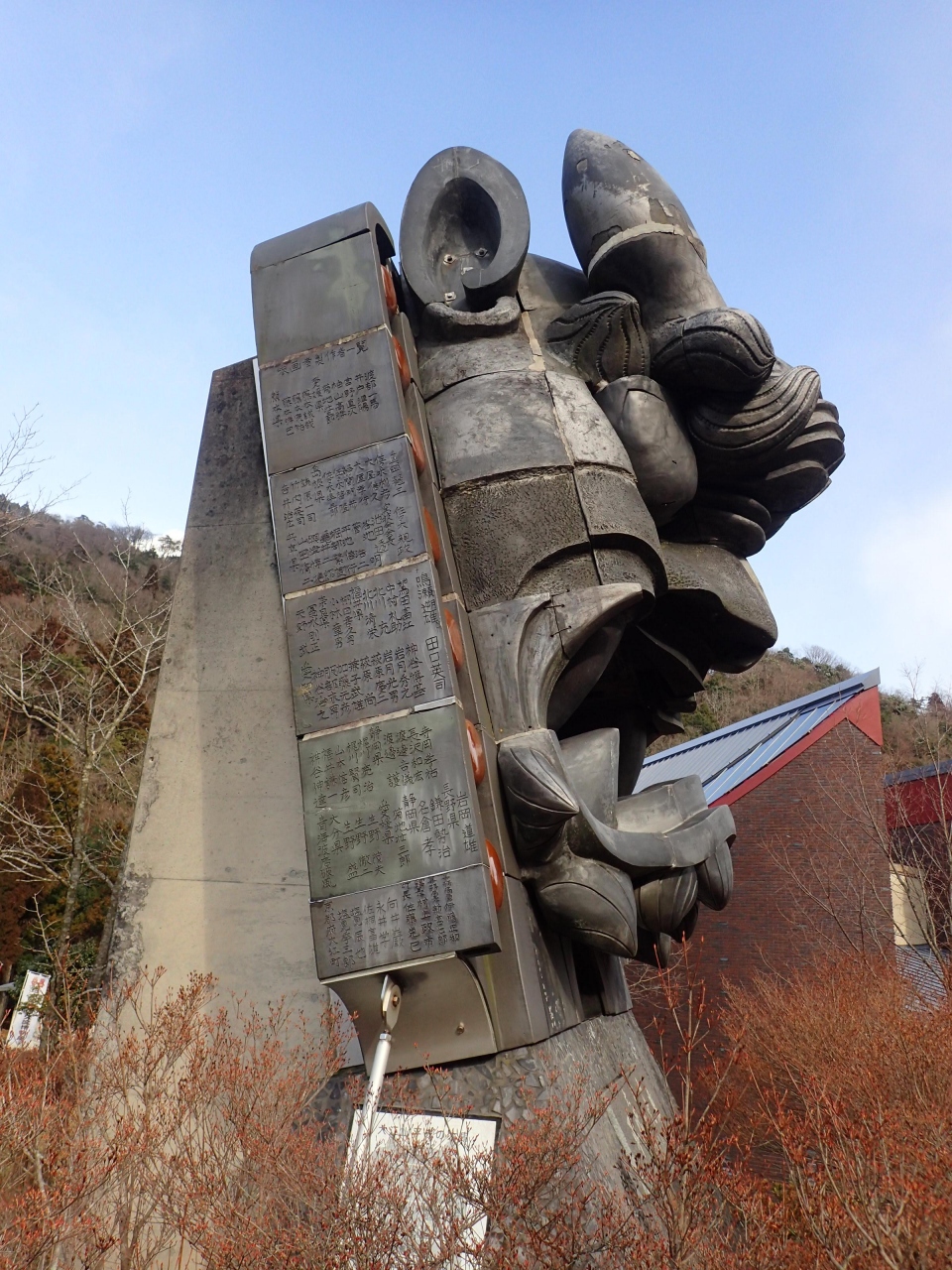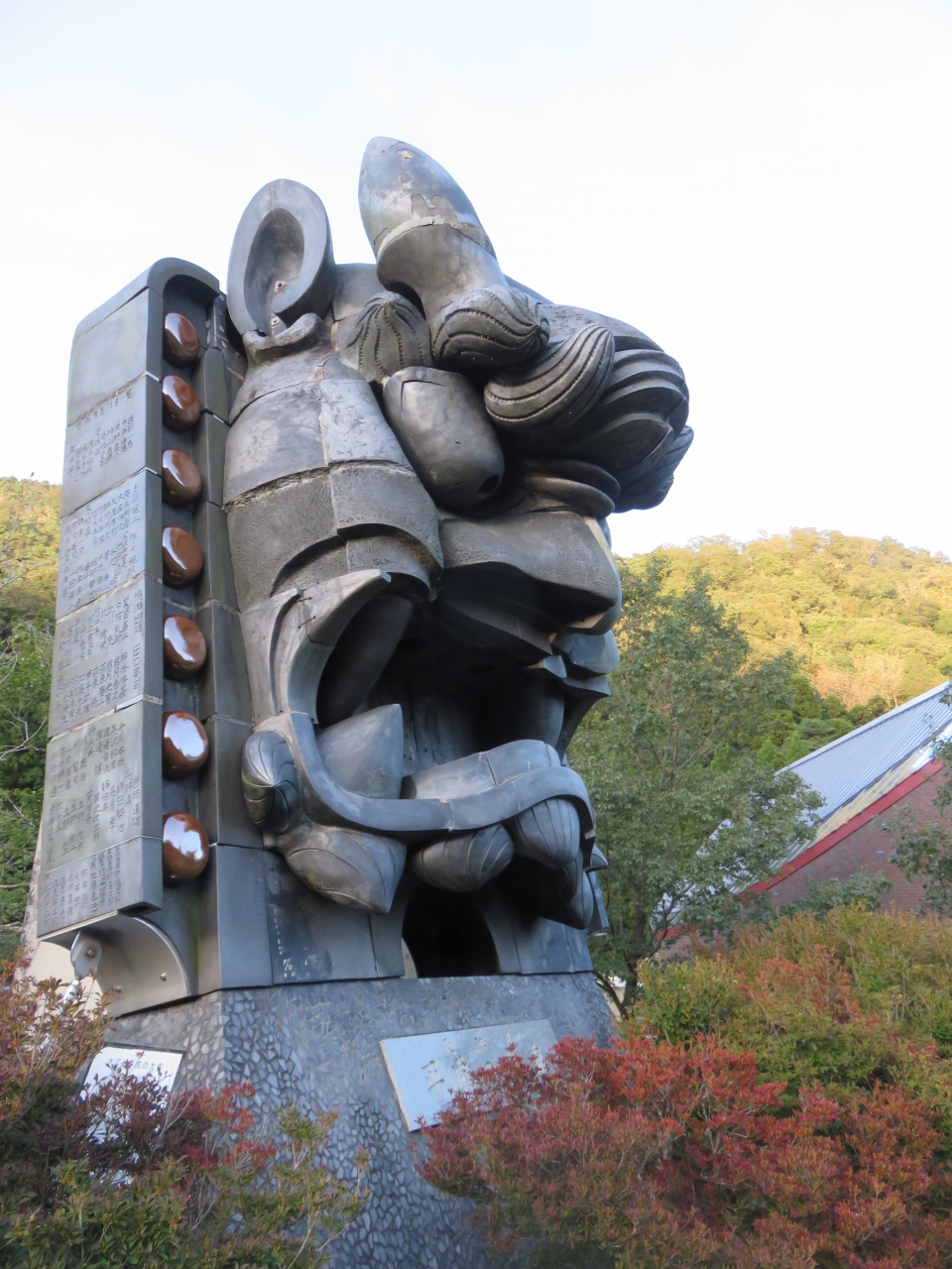 大江山は鬼と縁があると知ってはいましたが、何故なのかは知らずにいました。今回訪ねてみて初めて知りました。酒呑童子伝説の舞台... 続きを読むだったんですね。ちょうど企画展で酒呑童子伝説のことを詳しく解説してくれていました。ざっくり言うと神便鬼毒酒という効力のえぐい酒を酒呑童子に飲ませて首をぶった斬るという荒業で鬼退治したそうです。その酒呑童子が寝じろにしていたのが大江山とのこと。うん。納得。 展示内容は日本各地の鬼の伝説や鬼瓦、そして世界の鬼となっていました。鬼は自然に対する畏怖であったり、忌み嫌うものであったり。そして時には魔を退けるものであったり。鬼とは何なのか、少し考えさせられました。鬼瓦の変遷や、東南アジアの鬼と日本の鬼が雰囲気似ていたり、色々面白かったです。デカ鬼瓦もいい記念になります。 閉じる