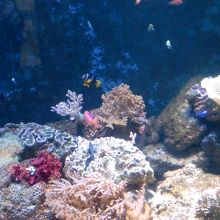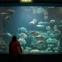 様々な種類の魚が広い水槽内を自由に泳ぎ回り、飽きることなくゆっくりと観察出来ます。