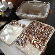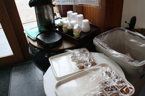 軽食とコーヒを飲む事ができます。食事については、おにぎりやおしんこ、更には、味噌汁等々、食べる事ができます。