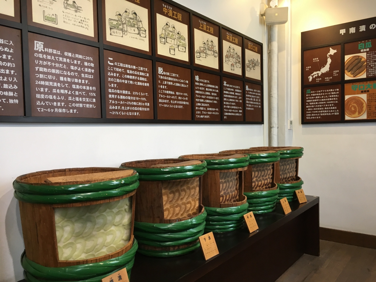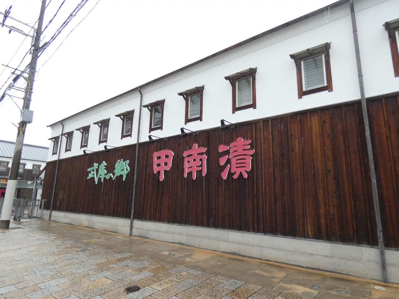 奈良漬けの老舗、甲南漬けの本店と国登録有形文化財建造物の資料館、そして、日本庭園を配した多目的空間もあります。