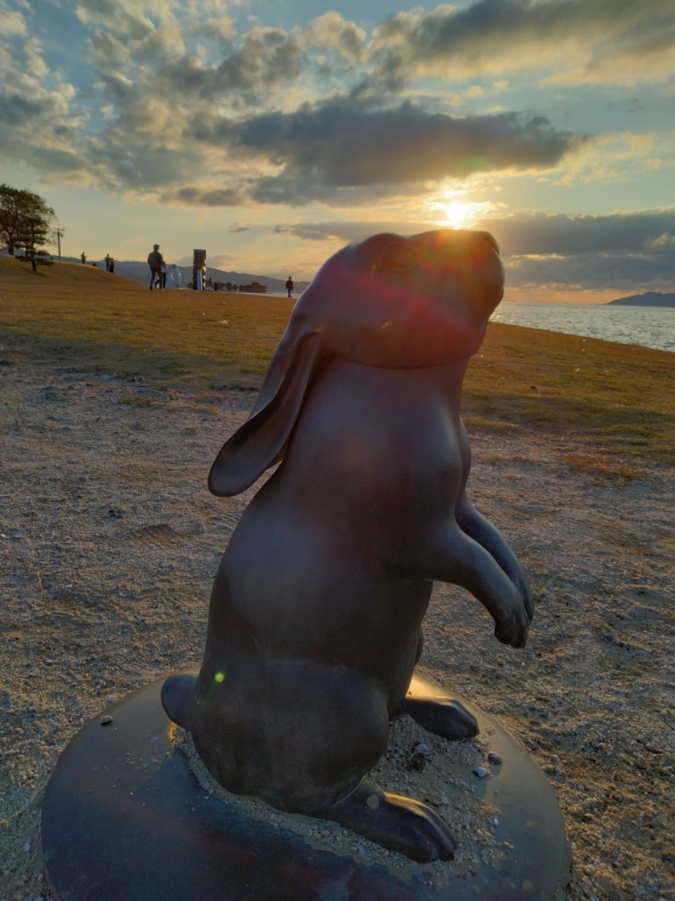 宍道湖岬に立つ島根県立美術館は、水との調和をテーマにした美術館です。 国内外の絵画をはじめ、版画、工芸、写真、彫刻などを... 続きを読む展示しています。 美術館周辺には7作品の屋外彫刻があって、見応えがあります。 12羽のうさぎで跳躍を表現した「宍道湖うさぎ」が人気です。 湖側から2つめのウサギには縁結びの御利益があるといわれています。 宍道湖に沈む夕陽が美しい絶景スポットでもあります。 閉じる